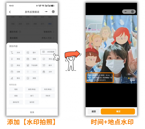 同学们通过拍照上传,水印显示具体位置、拍摄时间等信息,杜绝P图造假。