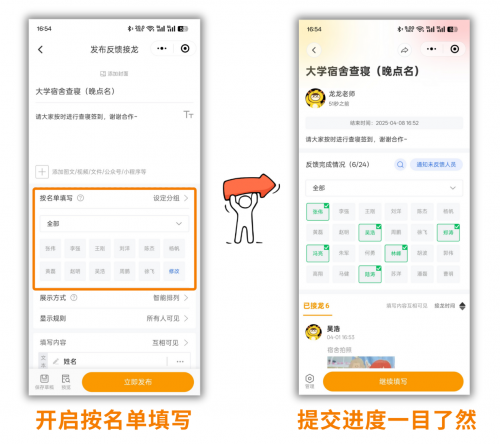 有了接龙管家,一条接龙搞定整个学期跑操出勤!