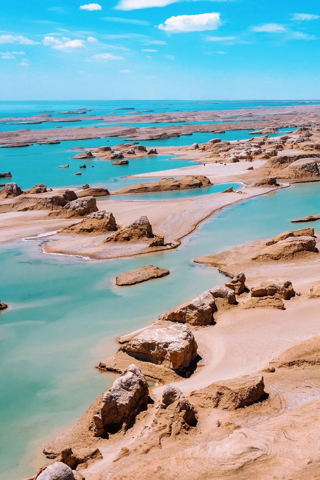 探秘荒漠中的翡翠湖,无人机视角(嘉恒小包团/品质游部分线路含基础航拍)展现媲美剧景的绿宝石秘境。