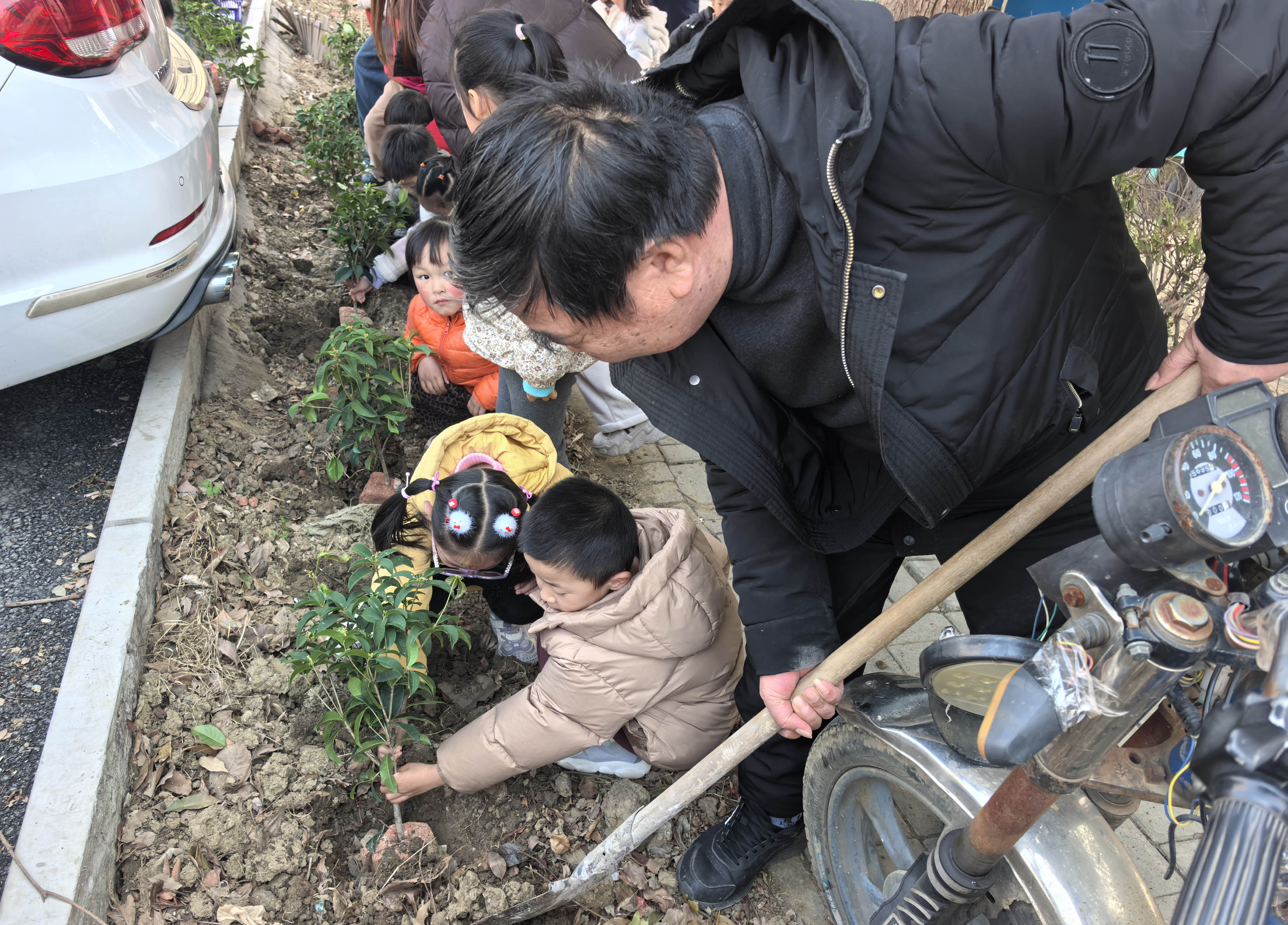 伴随着欢快的氛围,幼儿园的孩子们在老师的带领下有序抵达,一张张稚嫩的脸庞上满是对活动的期待与向往。活动伊始,“五老”志愿者结合自身经验,以通俗易懂的方式,手把手向孩子们示范挖坑、扶苗、培土、浇水的正确流程,细致传授树木养护的基础常识,讲解植绿护绿的重要意义,引导孩子们领悟“十年树木,百年树人”的深刻内涵,在言传身教中传递责任与温暖。