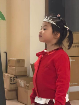 这大概就是生活最舒展的模样了吧?平安夜当晚,朱珠的新家灯火通明,欢笑不断。她身穿一件鲜艳的红色毛衣,身旁4岁的女儿“小珠宝”也穿着同款亲子装,头顶一顶亮晶晶的钻石小皇冠——那是妈妈亲手为她戴上的。小家伙走起路来挺着小圆肚子,步子却迈得笔直,生怕皇冠滑落,扎着两条小辫还不忘对着镜子照来照去,那股被全家人捧在手心的自信劲儿,藏都藏不住。