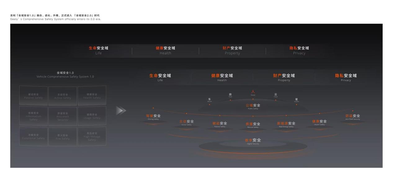 硬件的突破只是故事的一半。与安全中心同步发布的,还有吉利“全域安全2.0”技术体系。这不是简单的版本升级,而是一次安全理念的全面进化。