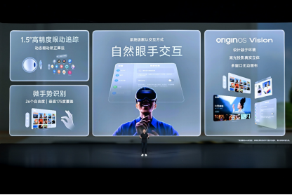 vivo Vision探索版自然精准的操作体验,让交互轻松上头。产品搭载了基于“负设计”理念的全新OriginOS Vision系统。源于大自然的灵感让图标和窗口格外真实地存在于用户眼前,信息的呈现不再被困于小小的屏幕,而是自然地浮现在周围的空间中。操作方式从“隔着屏幕点”,变成了“眼一看,手一动”,准确无误的掌控空间。历时四年的深耕打磨,vivo Vision探索版实现了1.5°高精度眼动追踪,相当于站在2米外看1块手表大小的精准定位,加上26个自由度的指尖级手势识别和垂直175度的识别范围,为用户带来了自然精准的交互感受。