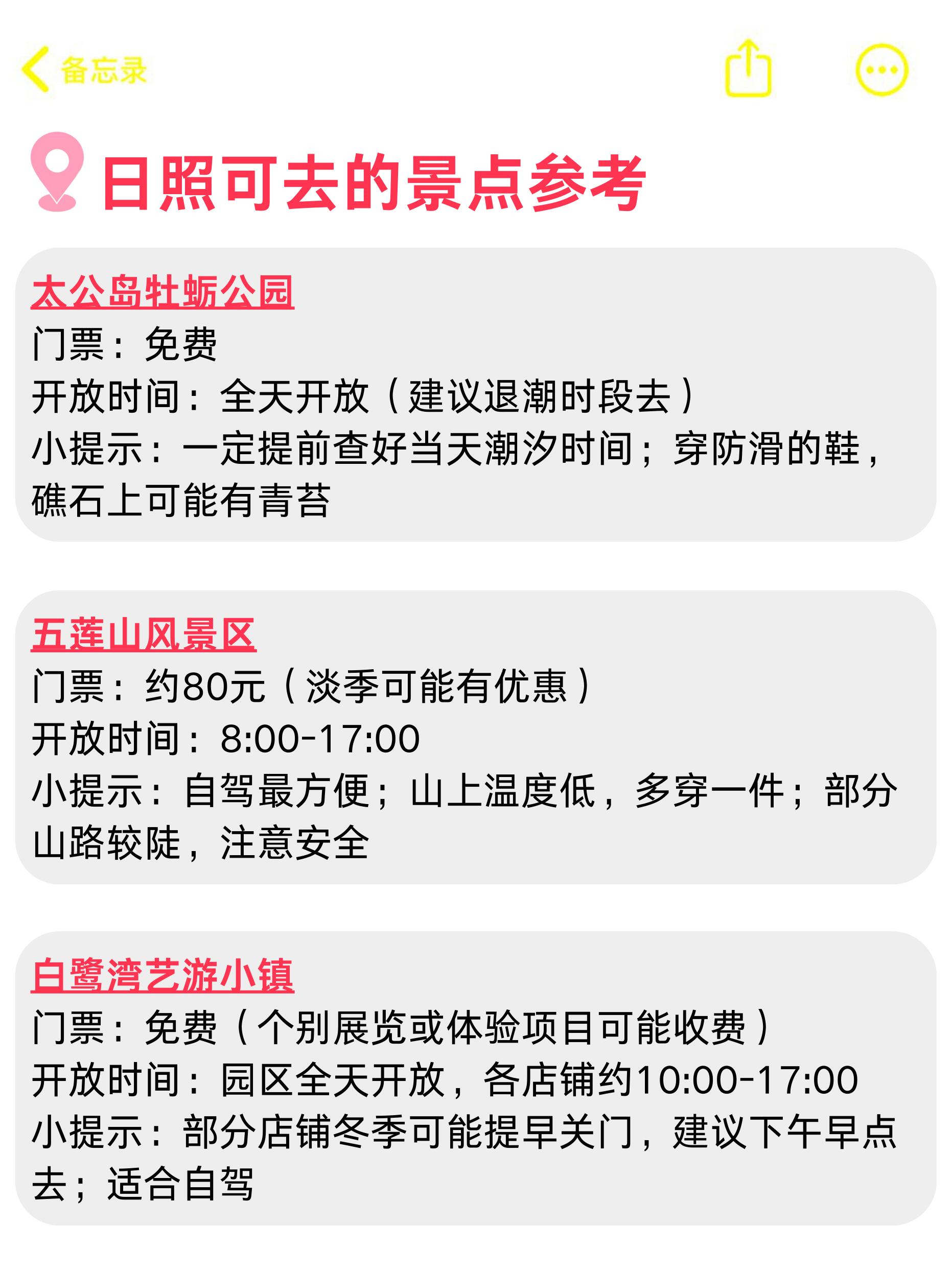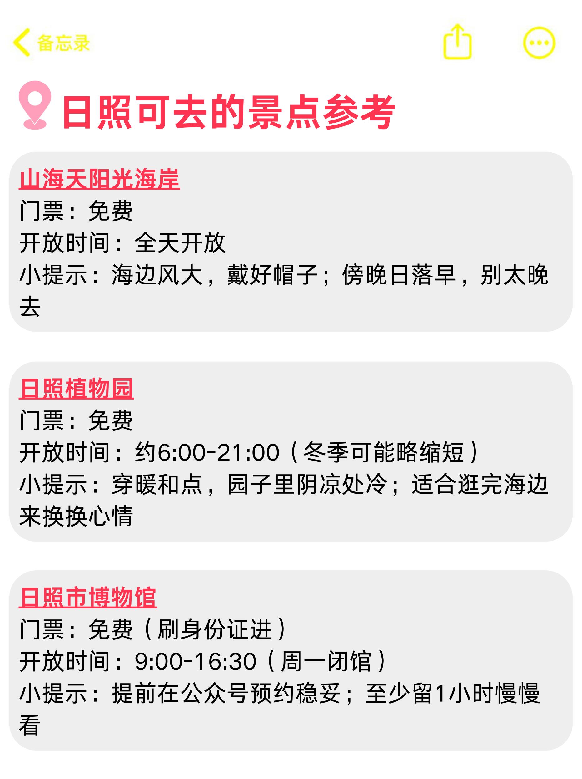 🚄火车:优先选择日照西站(高铁为主),公交和出租车接驳便利;日照站位于市区,周边公交线路较多