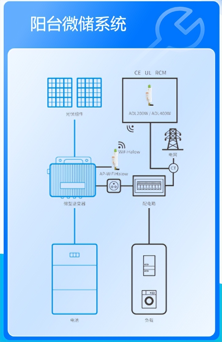 核心配置:选用 ADL200W/ADL400W 系列电表,支持 WiFi、WiFi Halow 等无线通讯方式,互感器穿孔尺寸可选 D10,适配小功率光伏组件与微型逆变器。