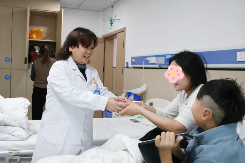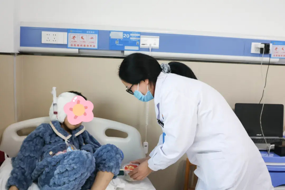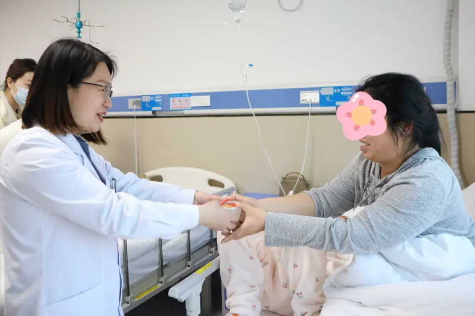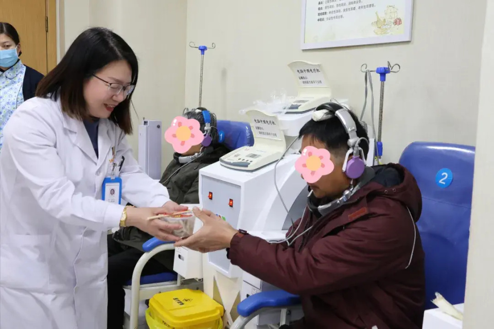 为了让每一位住院患者都能感受到这份心意,医护人员逐一走进病房,将热气腾腾的饺子递到患者手中,边送饺子,边与患者交谈,询问他们的身体恢复情况,鼓励大家积极配合治疗,并送上节日祝福“冬至安康”。在细致入微的交流中,患者们的脸上浮现出温暖的笑容,纷纷表达感谢。