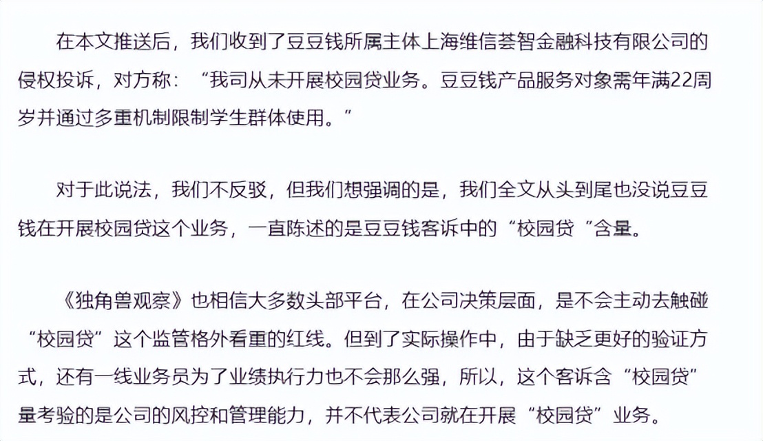 时隔5个月,这篇文章又收到了上海维信荟智金融科技有限公司(豆豆钱运营主体)的投诉。