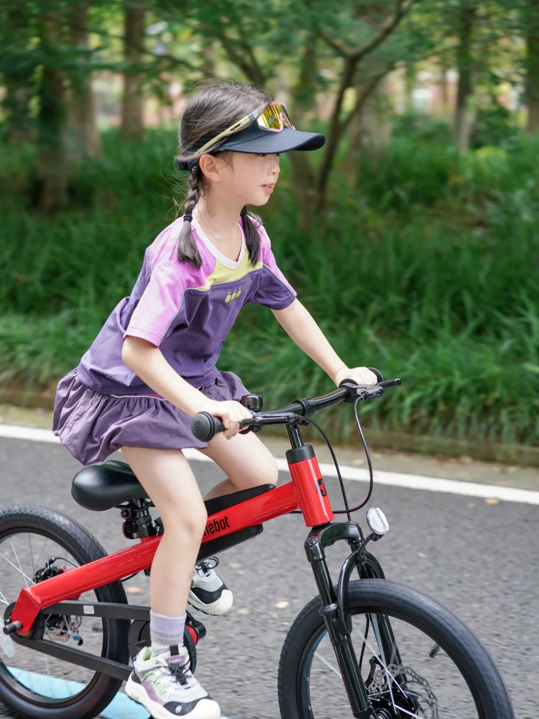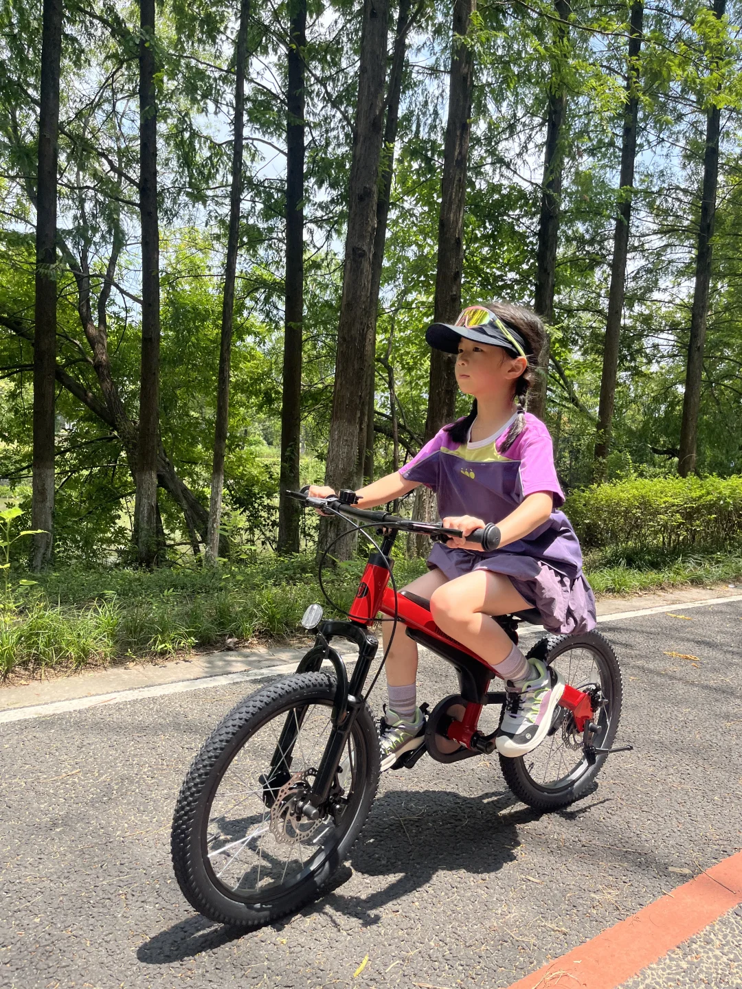 这已经是她的第二辆车了,随着个头长高、胆子变大,她的骑行路线不再局限于平坦小路,而是开始挑战更有趣的地形。