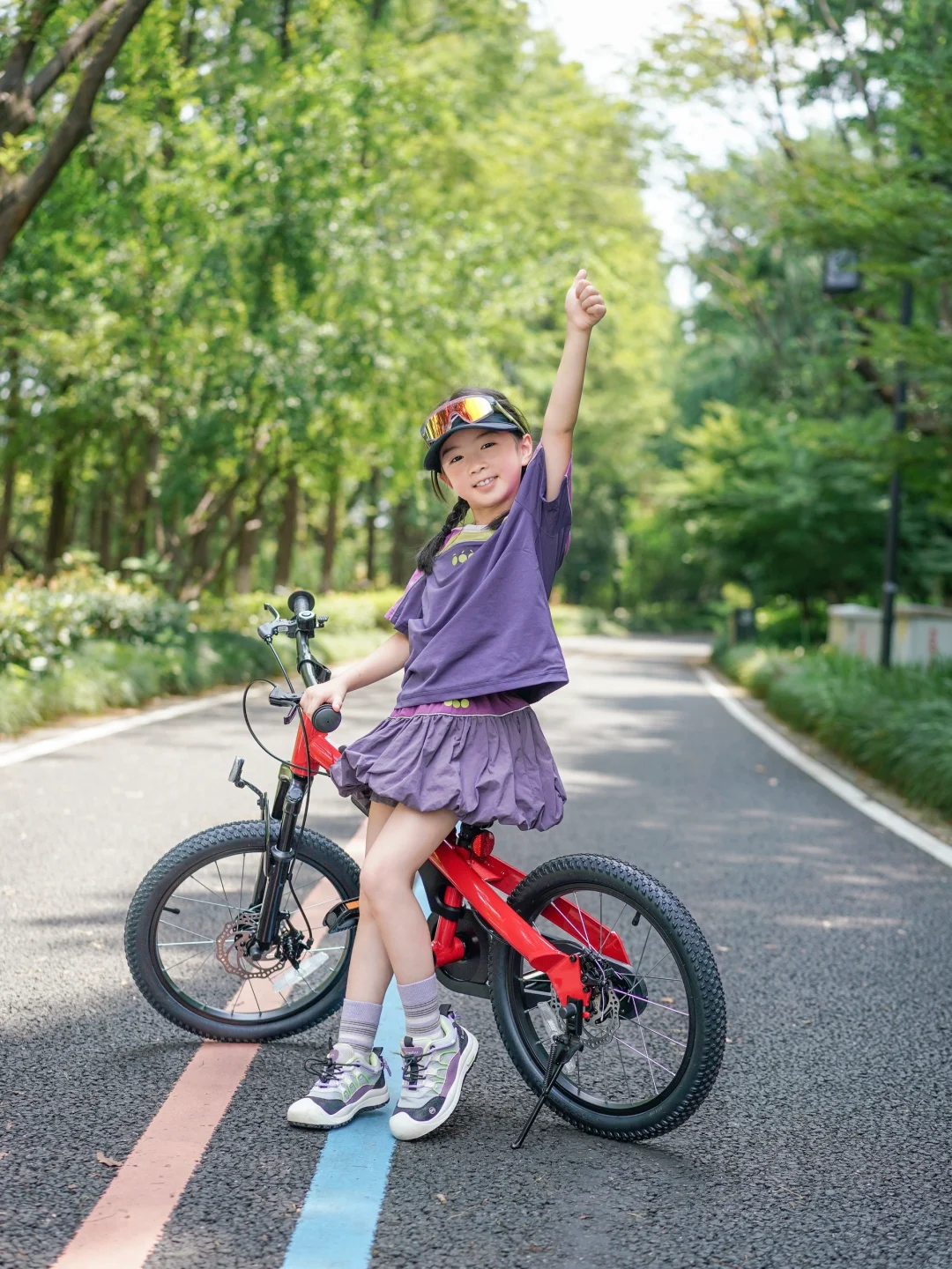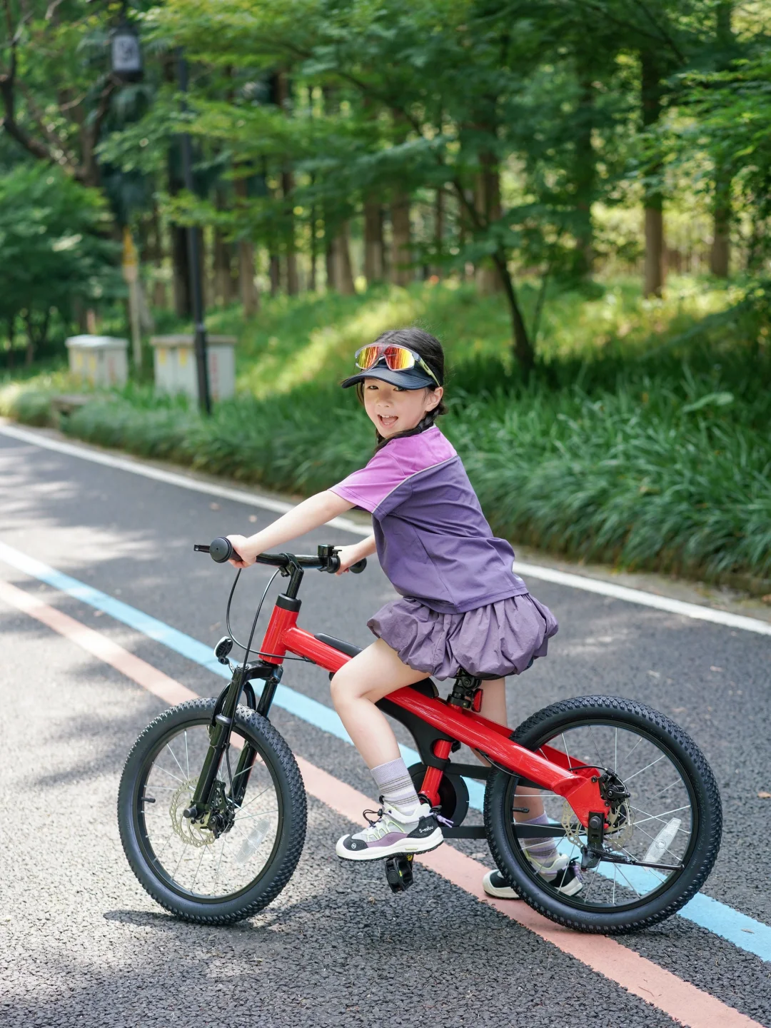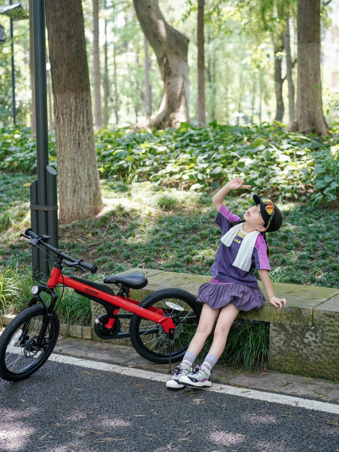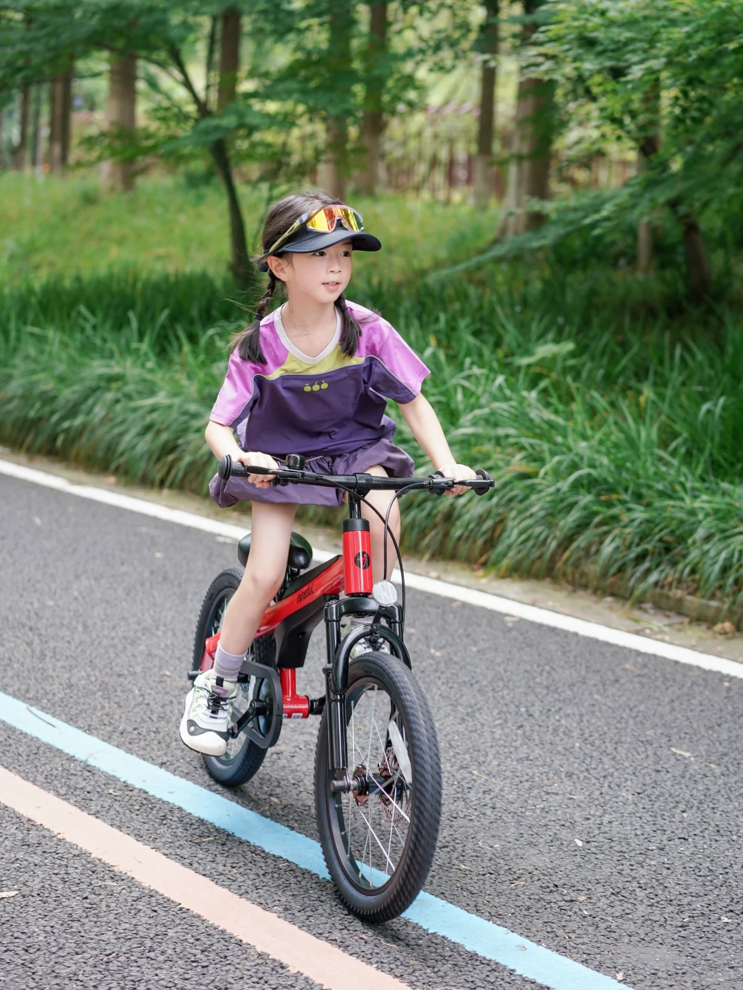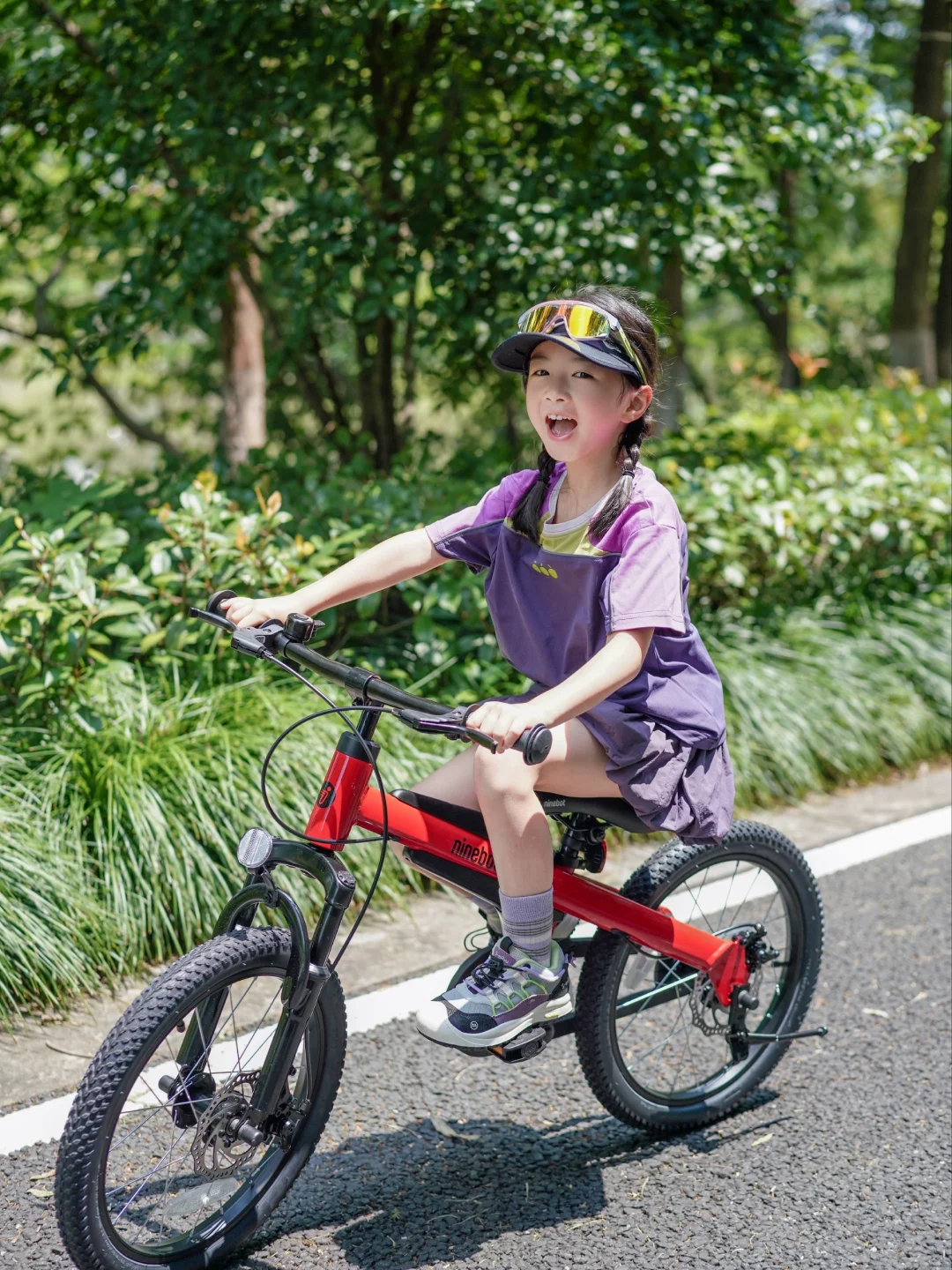 出发前,CC兴奋地跳上她的新伙伴——九号儿童自行车🚲