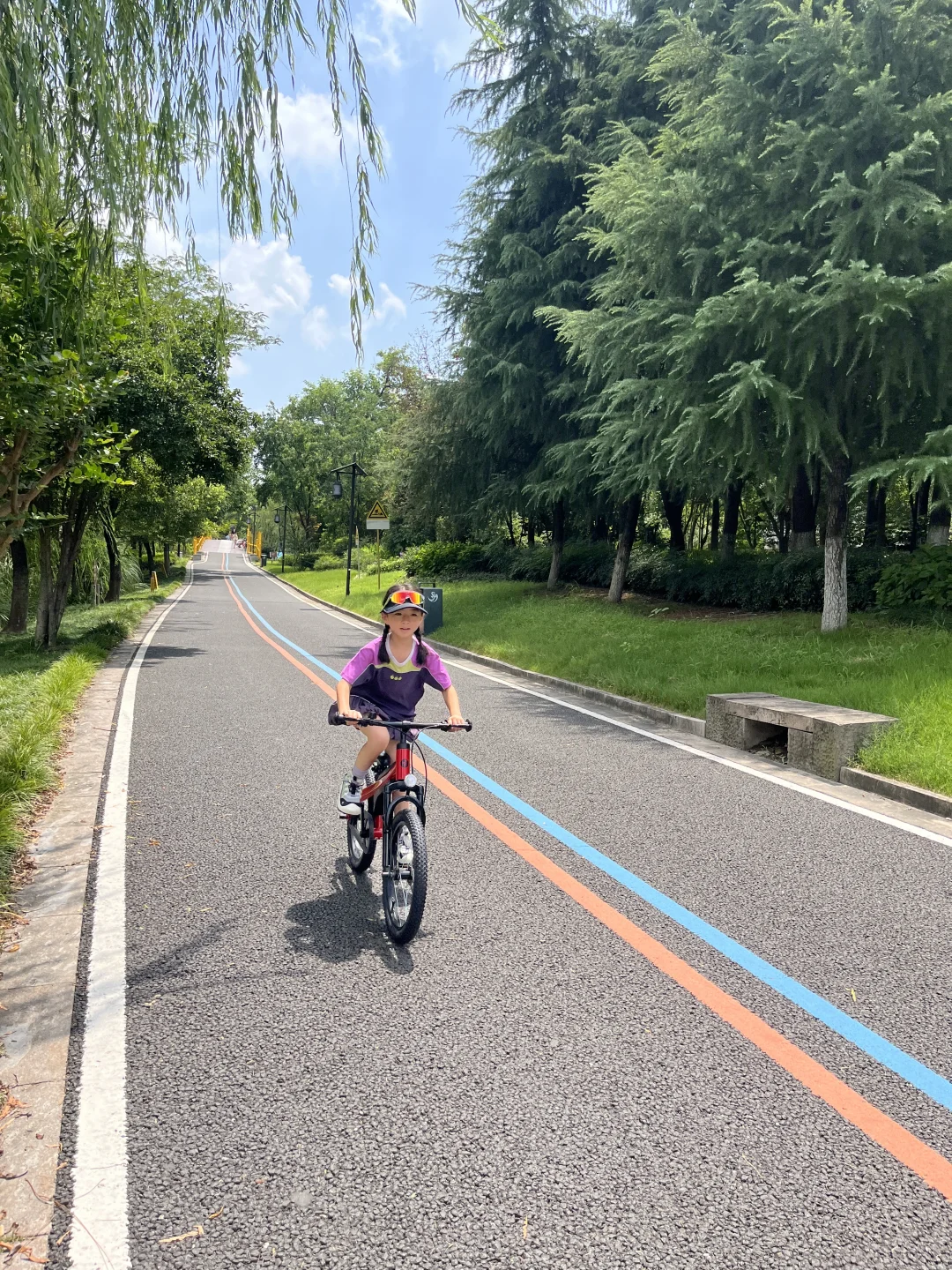 🍃夏日的清晨,微风轻拂,北塘河的绿道被阳光镀上一层温柔的金色。我和CC开始了每周例行的骑行时光,沿着这条城市里的“自然走廊”,享受属于我们的亲子时刻。