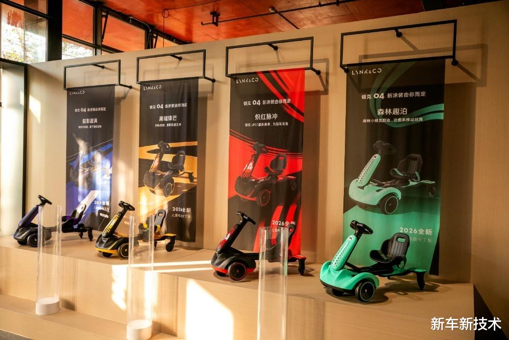作为领克“不止于车”品牌理念的生动诠释, 2026款领克04儿童电动卡丁车当天也正式发布。吉利汽车集团高级副总裁、领克汽车销售公司总经理林杰表示:“我们希望领克04能连接两代人的热爱,既连接我们对驾驶的激情,也连接孩子们对世界的好奇心。” 2026款领克04有四款风格候选,外观涂装将由Co客和孩子们共创决定。