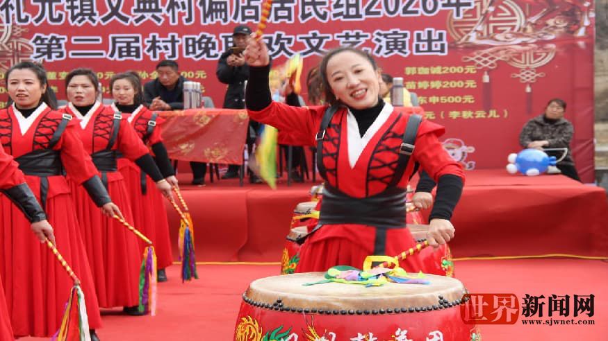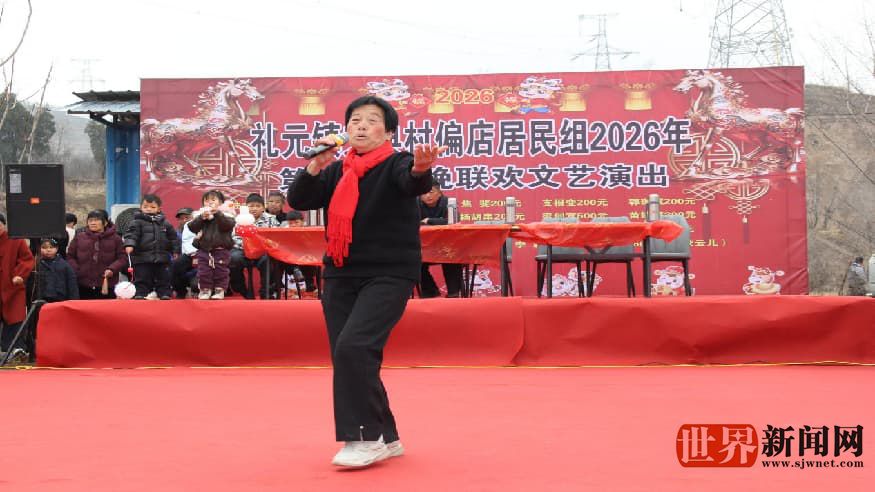 演出开始,礼元镇党委副书记张天辰代表党委政府讲话,为大家送上马年节日浓浓的祝福,镇党委政府领导和支村委领导分别为村里本命年人支持公益事业颁发了纪念品。随后20余个形式多样、精彩纷呈的文艺节目轮番登场,现场气氛热烈,掌声不断。鼓舞类节目气势恢宏《中华魂》《鼓舞盛世》《象王行》等鼓舞节目动作行云流水,鼓点铿锵有力,充分展现了中华儿女的昂扬斗志,瞬间点燃全场热情。舞蹈类节目舞姿翩跹《马年大吉》《2026好运来来来》《火花》《虹彩妹妹》等舞蹈或喜庆欢快,或优美动人,演员们身姿轻盈,飘然若仙,为观众带来视觉享受。歌曲类节目乡情浓郁《山沟沟》《守望的爹娘》《回娘家》、《老家是我最爱的老家》等表演唱以浓浓乡音传递深情,唱出了游子对家乡的眷恋,对父母养育之恩的感念,引发全场共鸣。民俗节目经典再现,传统节目《推小车》、小品《傻子相亲》、民间小调《小媳妇回娘家九月忙》等脍炙人口的节目令人捧腹又回味无穷,展现了民间艺术的独特魅力。