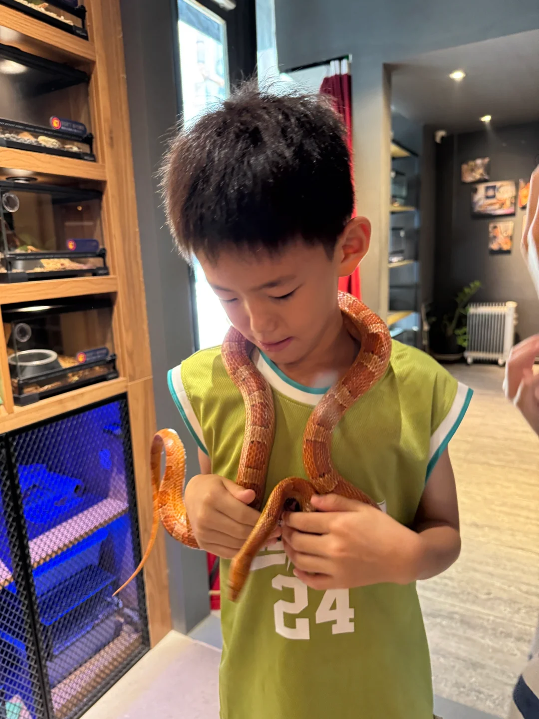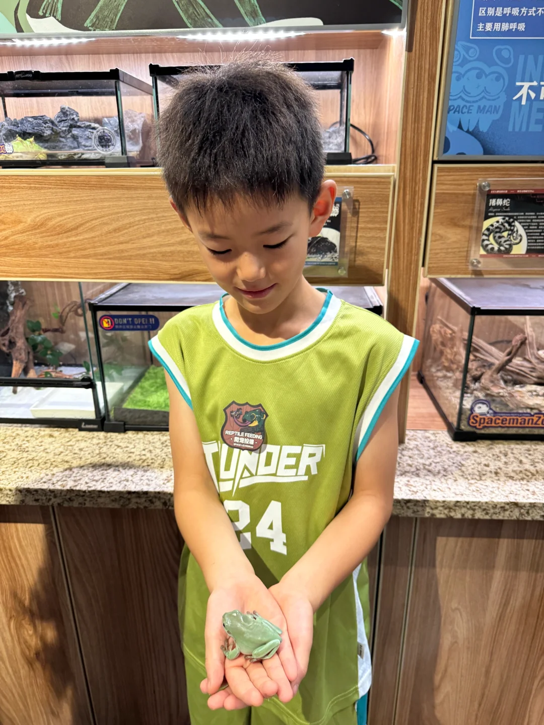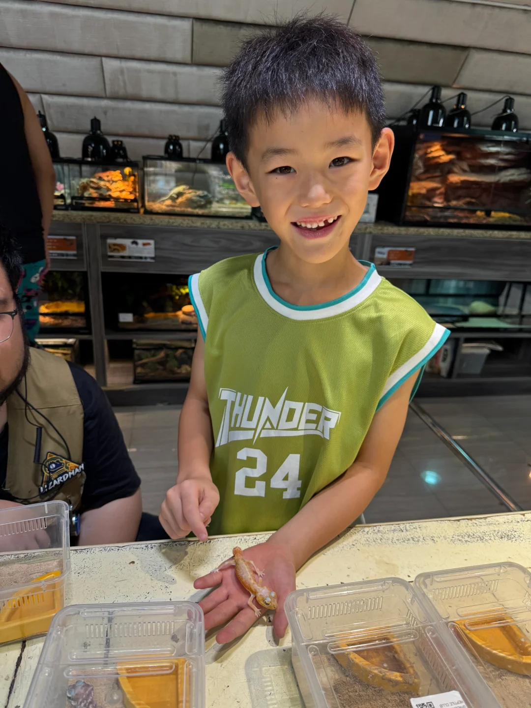 我家俩娃都喜欢这种爬行动物,弟弟一直想养蛇养蜥蜴的我死活没答应,我说塔要是从盒子里跑出来找不着了那我晚上连觉都睡不着。。。