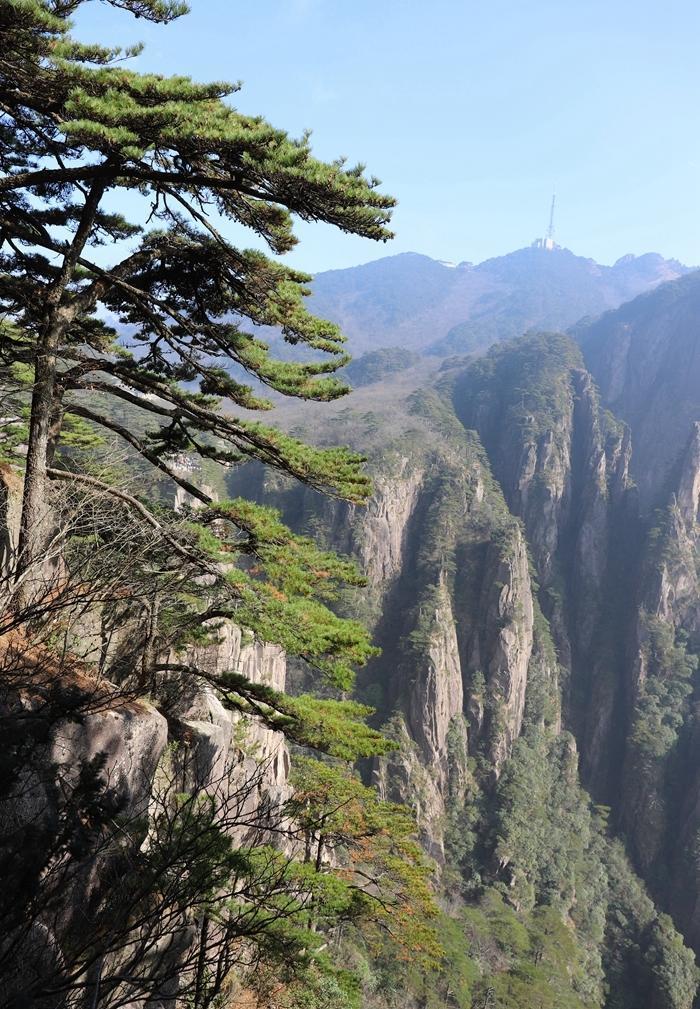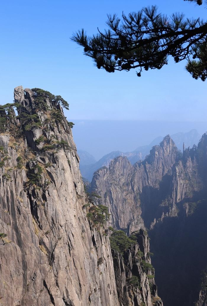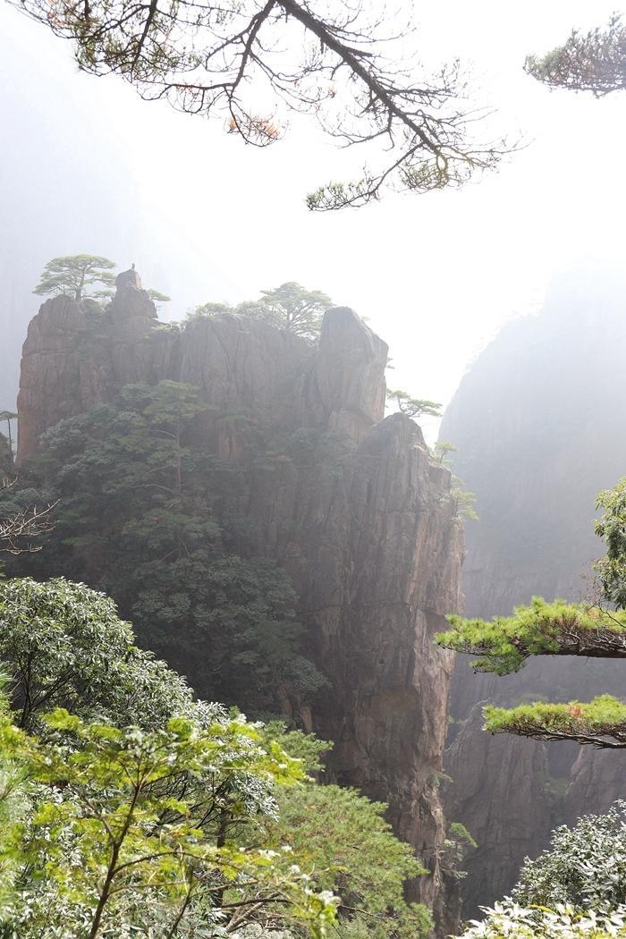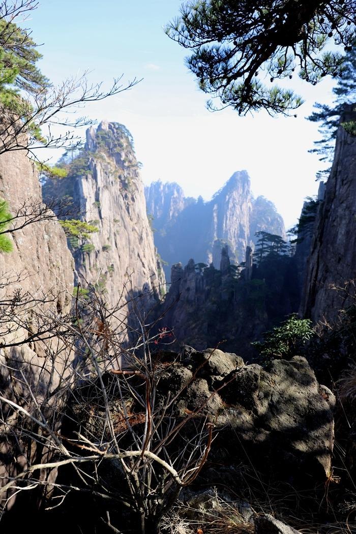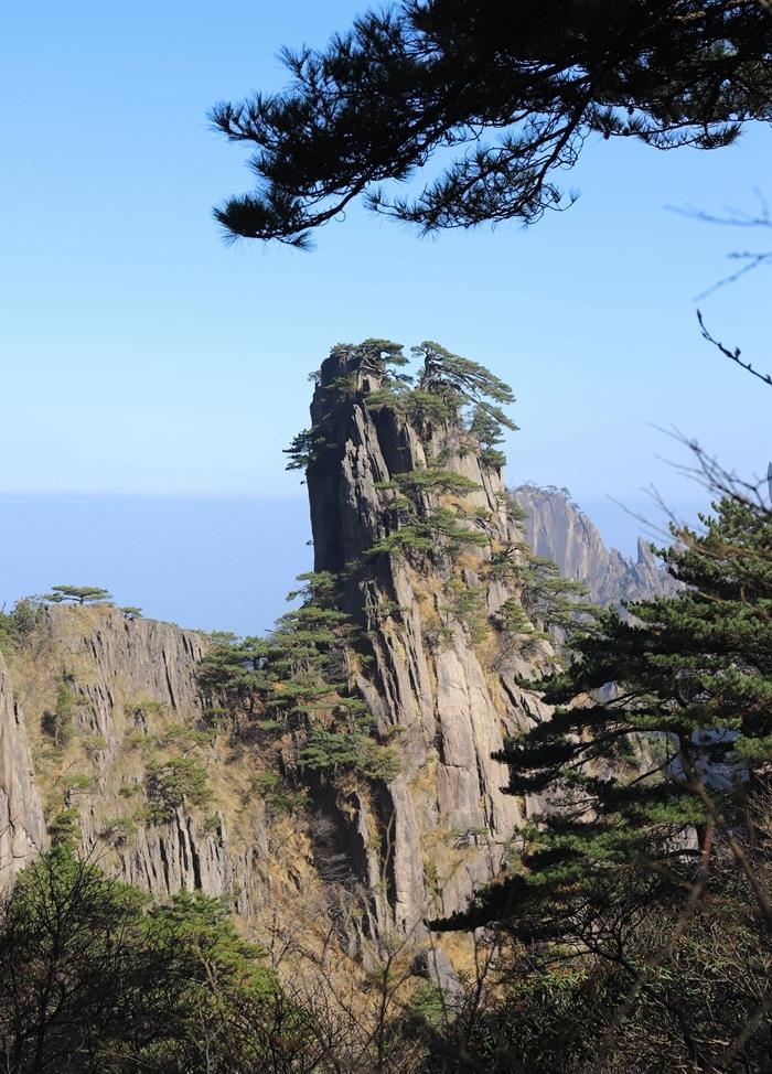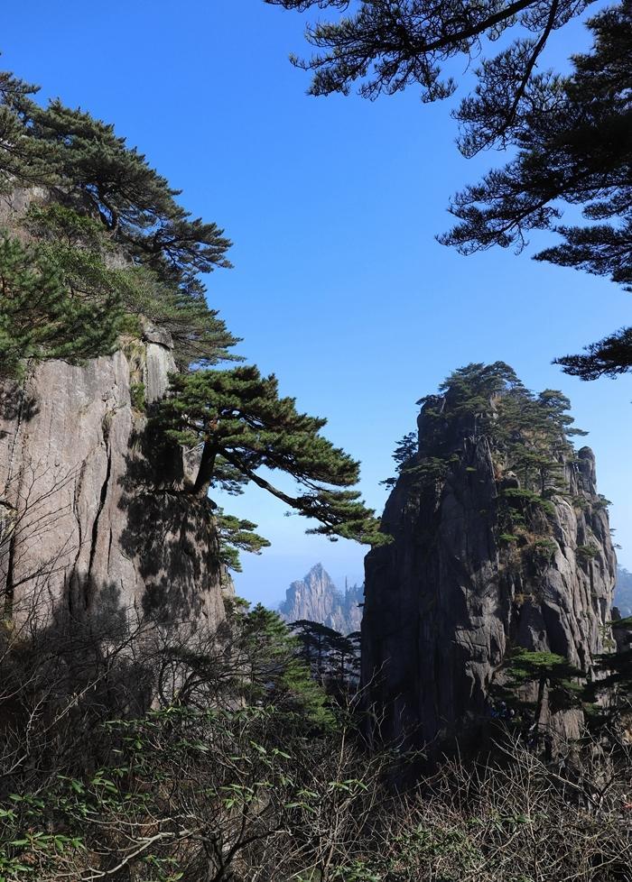黄山风景真是名不虚传,到处是奇峰怪石,松树扎根于石缝之中显示了顽强的生命力。