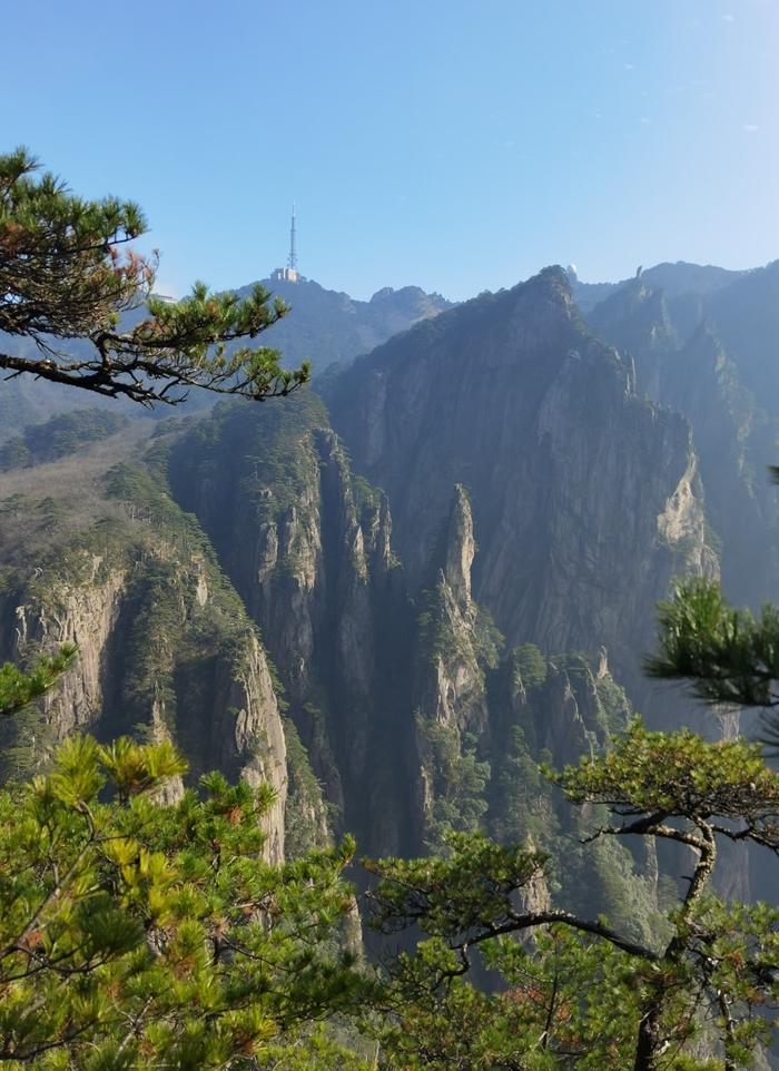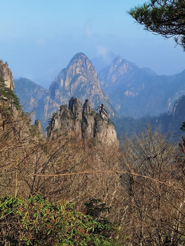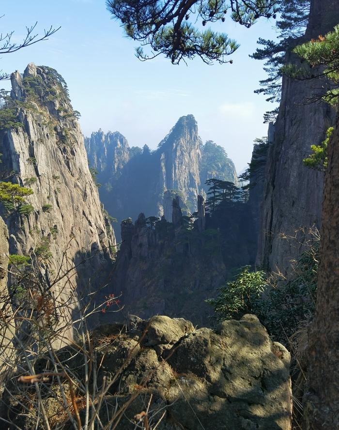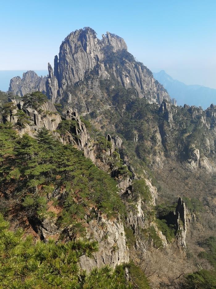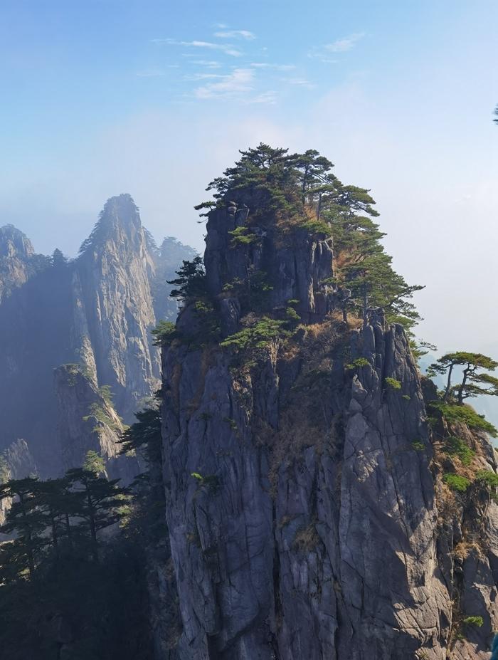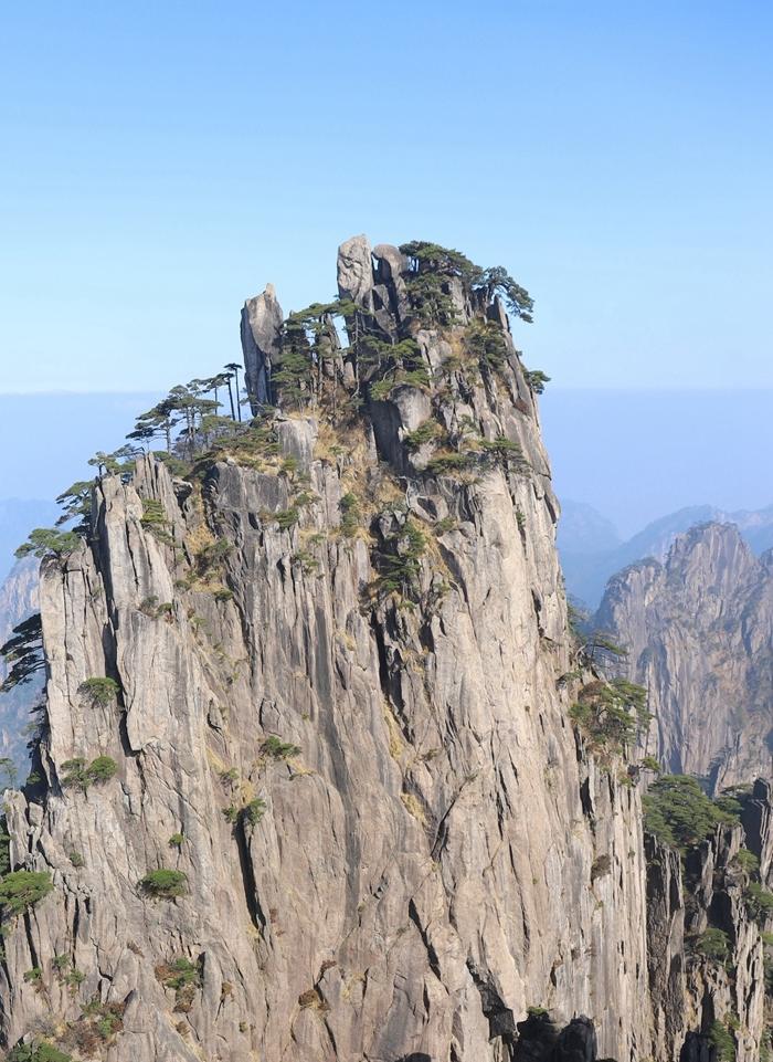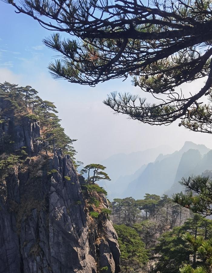 黄山风景真是名不虚传,到处是奇峰怪石,松树扎根于石缝之中显示了顽强的生命力。