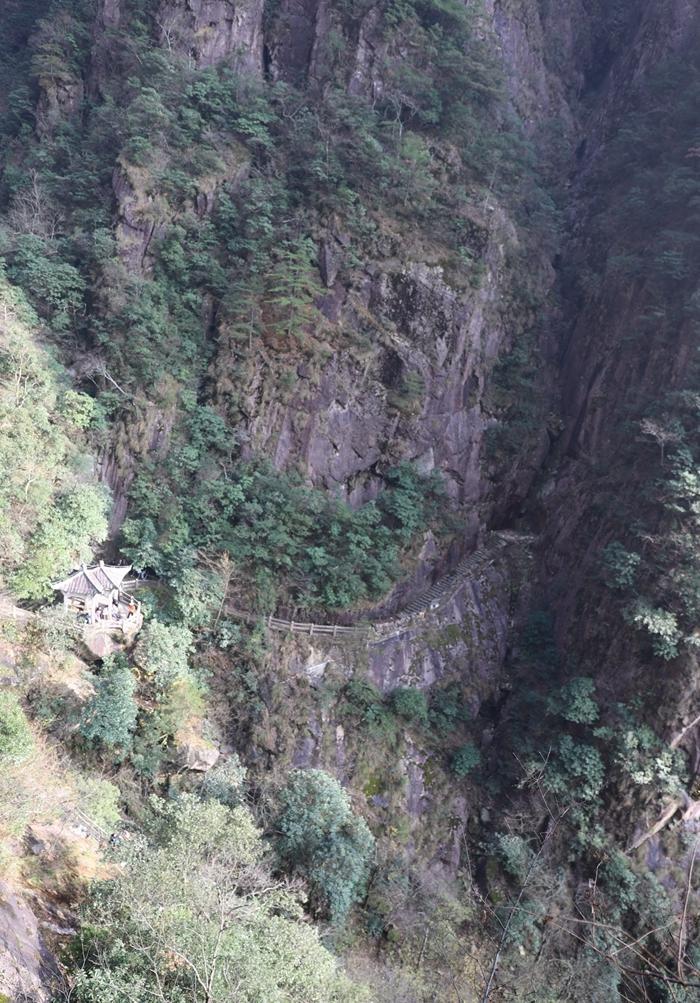 我们一路下行,走在山间的石板路上。路很窄,如果遇到对过的人,还要侧身让路,毕竟人家是爬山的人,比我们下山的人累多了。