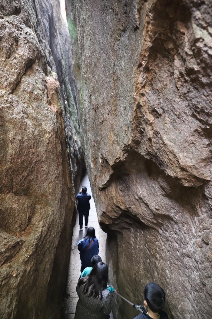 我们来到了一线天,通道只能一个人侧身而过。路过时抬头望天,只看到一线亮光。