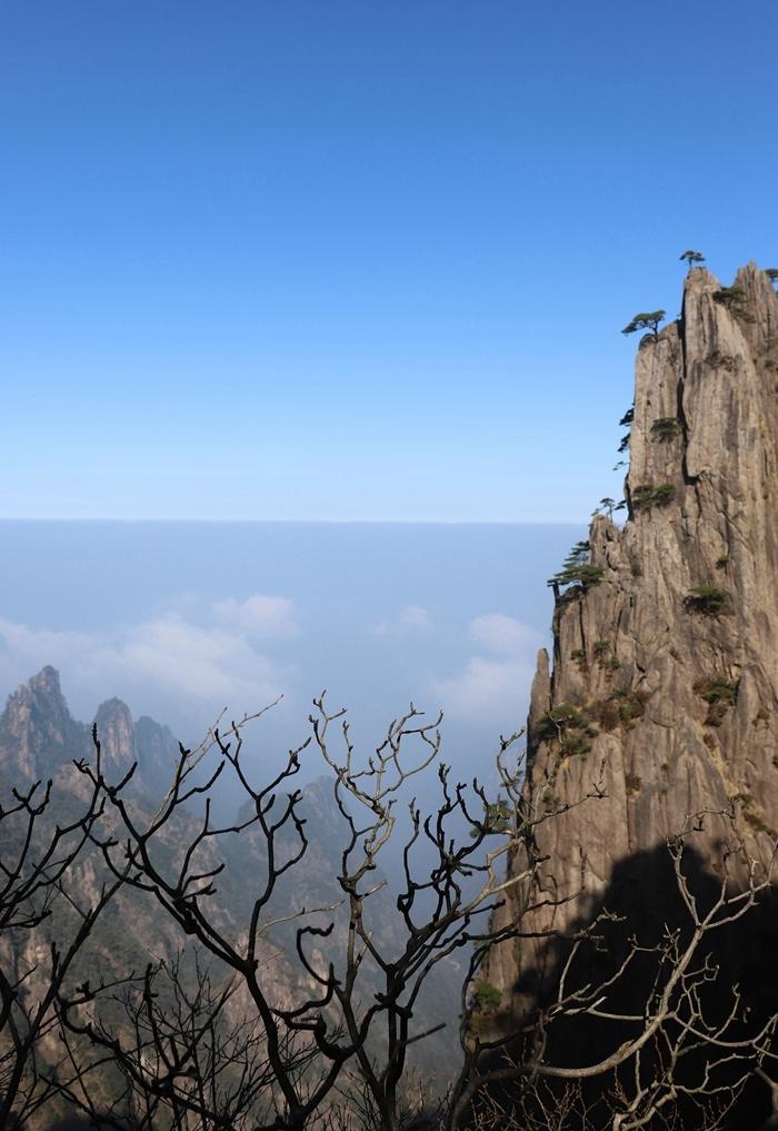 我长长地舒了一口气!终于摆脱了排队,可以欣赏美景!可是折腾了三个小时上山,传说中的黄山云海已经消失得无影无踪,看不到了。