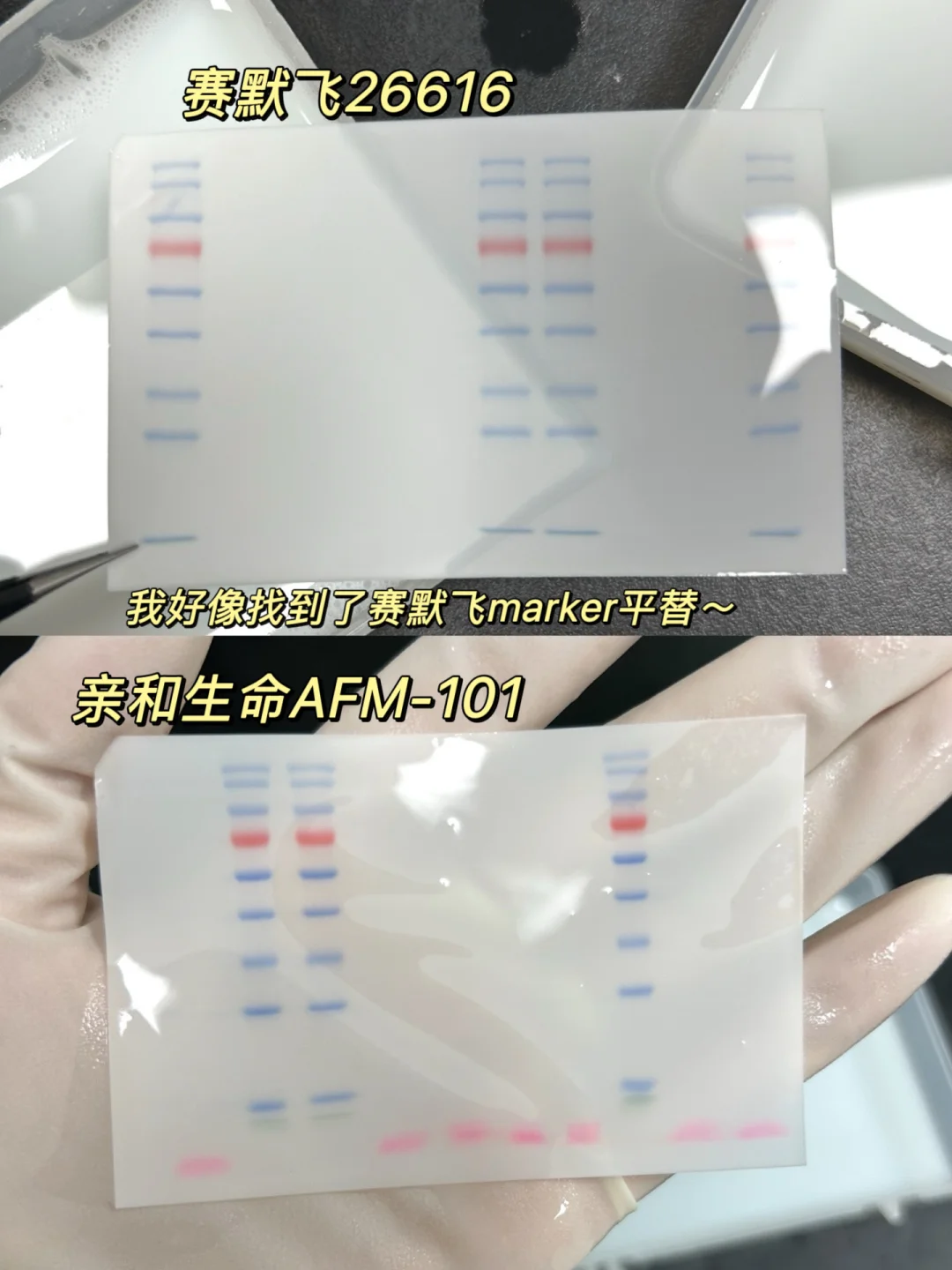 ⭐最近试用了亲和生命的marker,简直是赛默飞26616的平替,分子量准确,曝光后也很清晰,推荐给大家~
