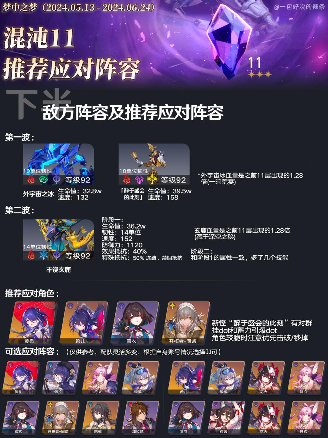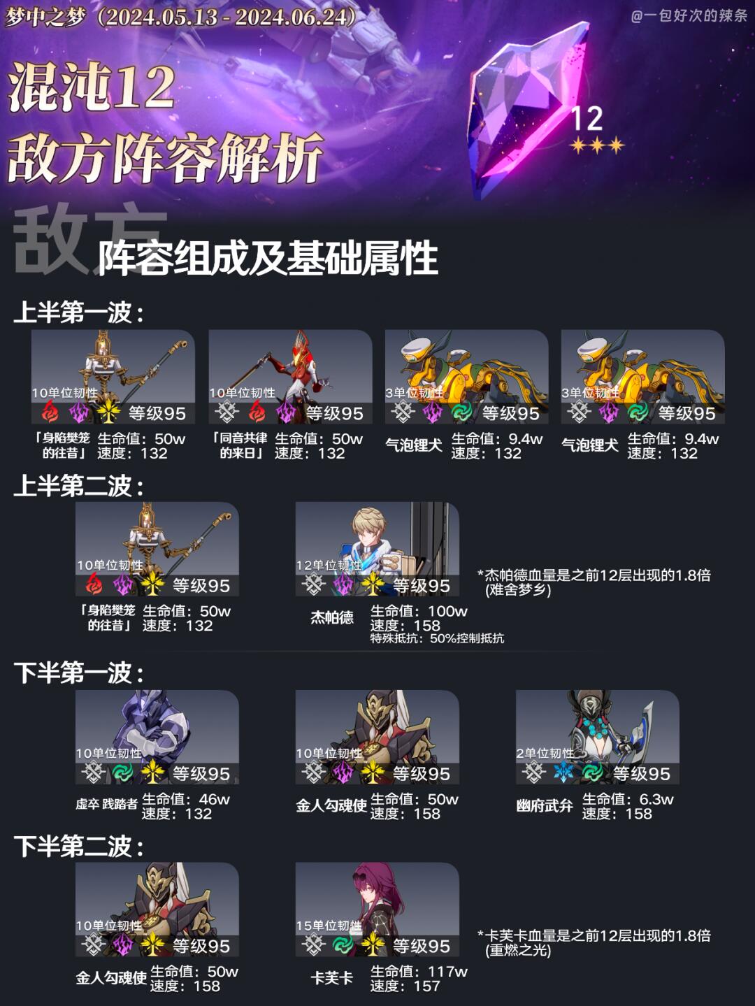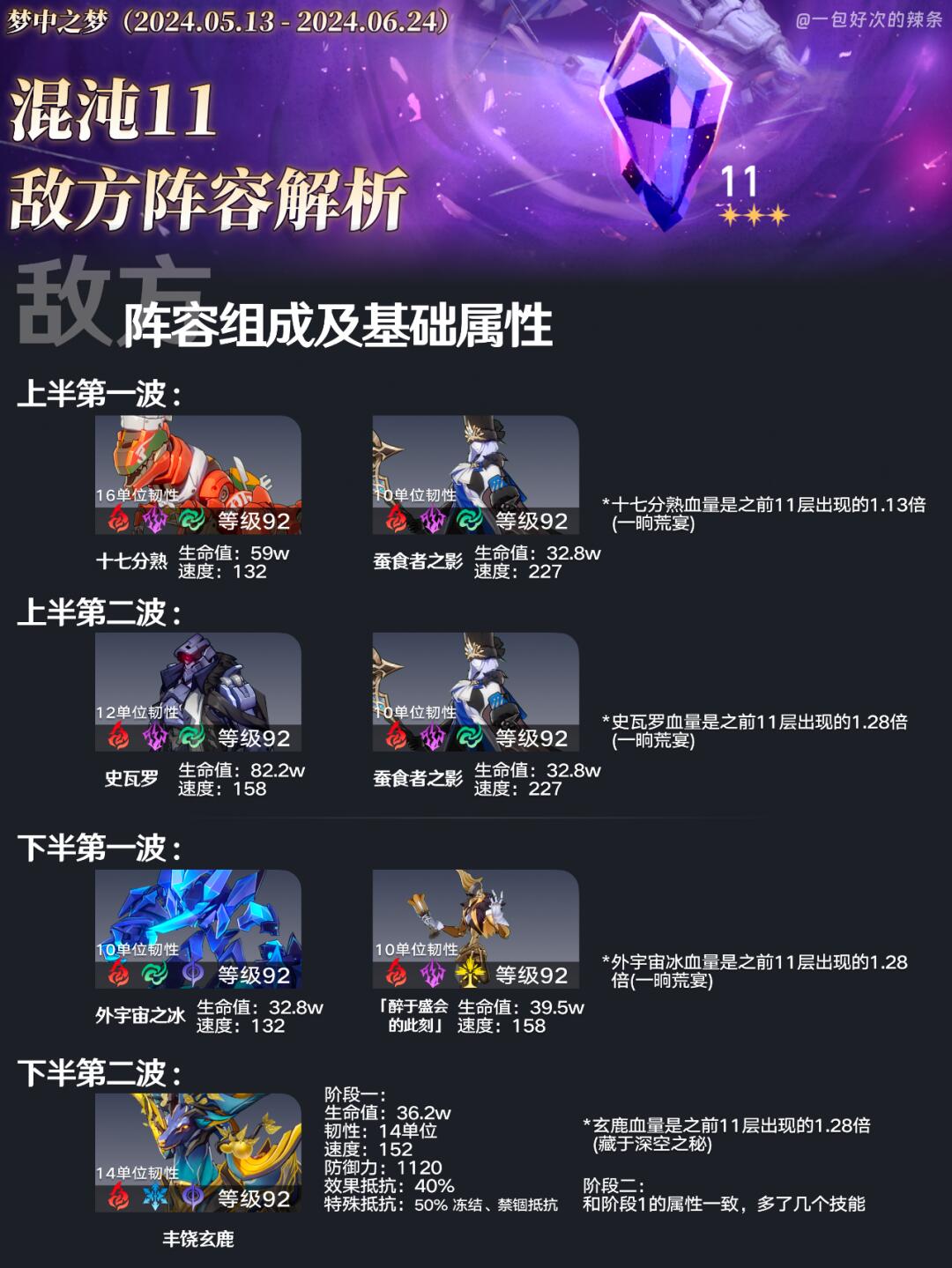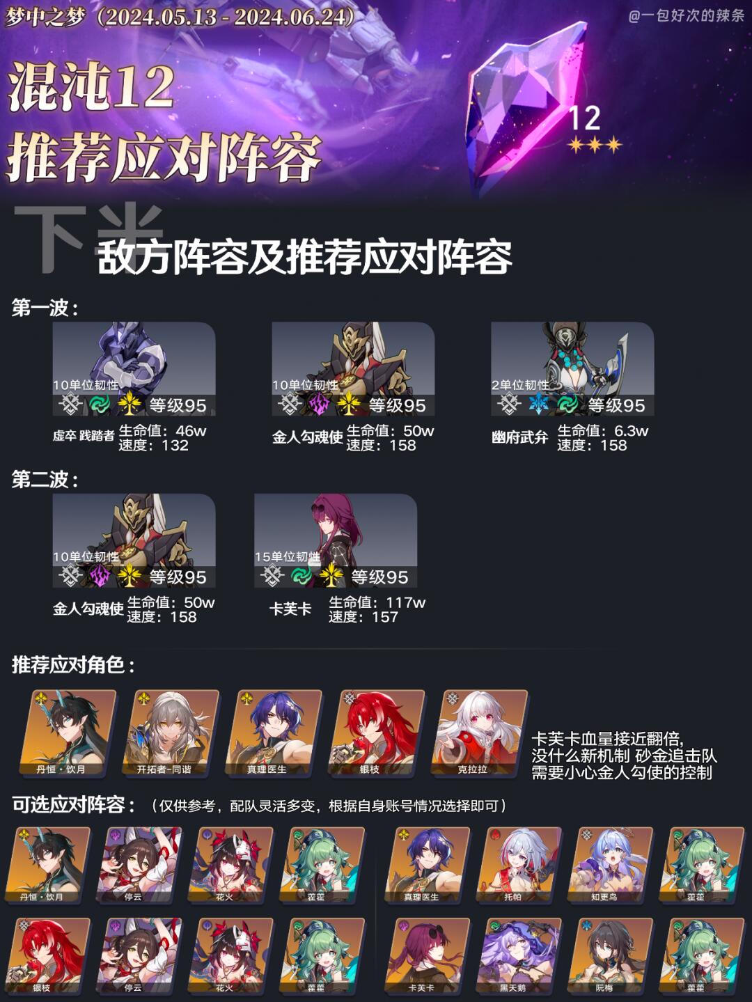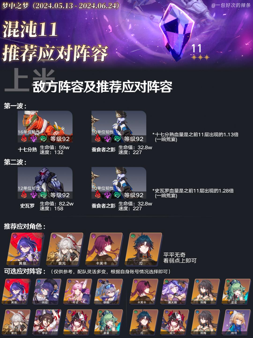 👋大家好,这里是辣条~ 📜本期是混沌回忆(梦中之梦)11和12层的阵容推荐 ————————————— 如有遗漏/错误欢迎指出,共同进步~ 最近新玩家/回坑玩家多,大家友善讨论哦~ —————————————