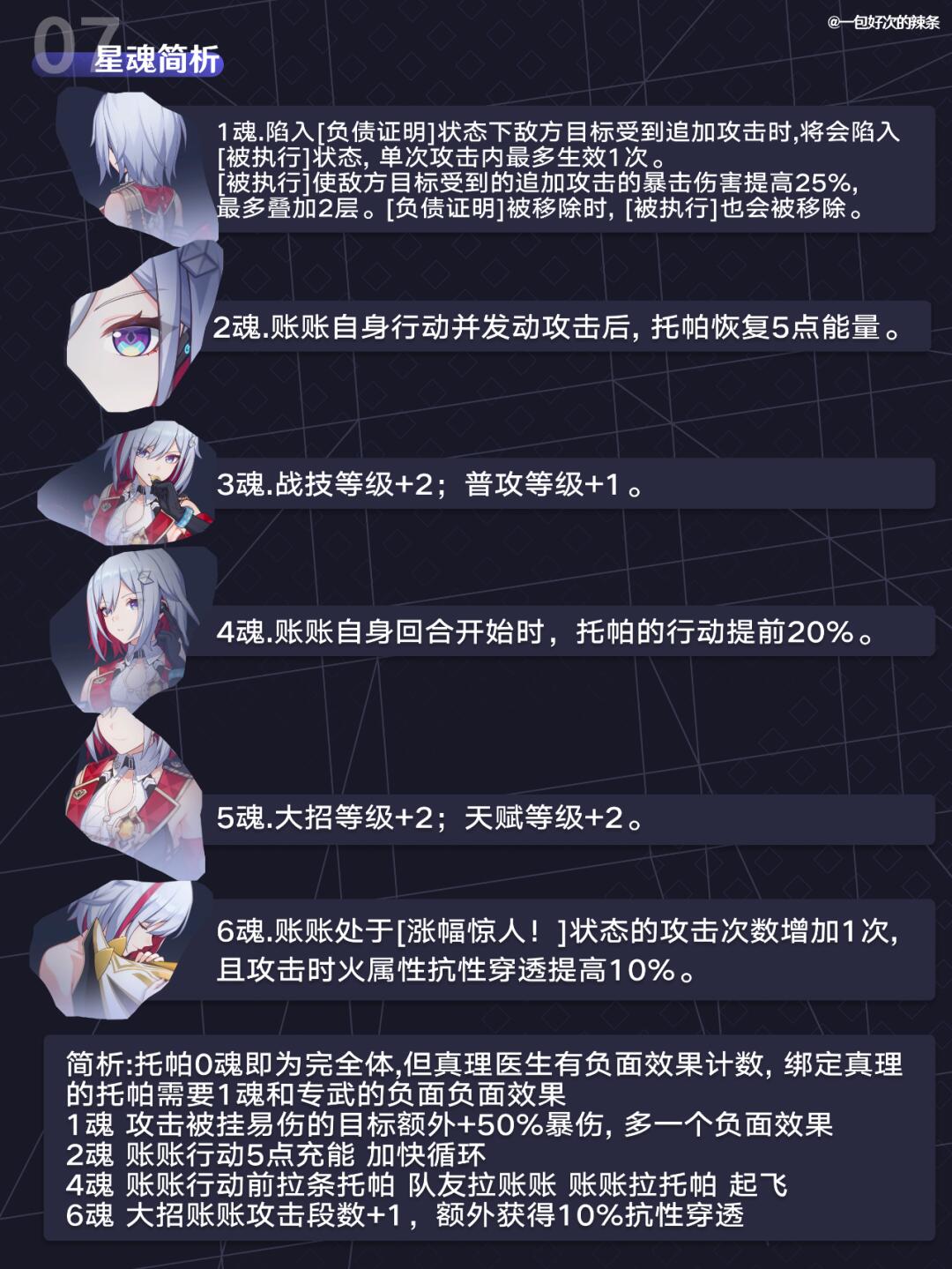 大家好,这里是一包好次的辣条! 随着追击队友的补齐,托帕的价值也在随之上升 本期带来的是『托帕&账账』的复刻培养指南 ————————————— 如有遗漏/错误欢迎指出,共同进步~ 最近新玩家/回坑玩家多,大家友善讨论哦~ —————————————