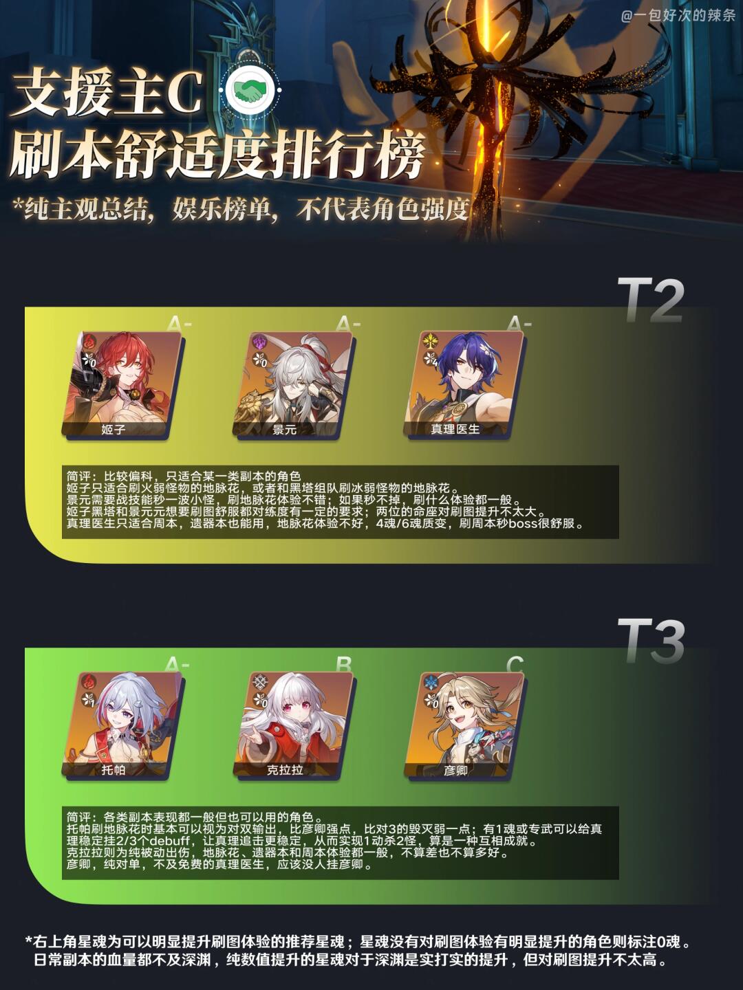榜单为个人纯主观总结,欢迎各位结合自身使用经验讨论; 主要以娱乐为主,不代表角色强度。