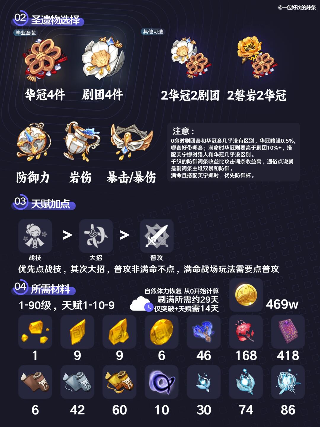 和阿贝多一样, 完全没有辅助能力, 不过0命就有防御攻击双倍率, 并且召唤物不会碎,后台伤害方面全面领先阿贝多, 至少是1.8个阿贝多