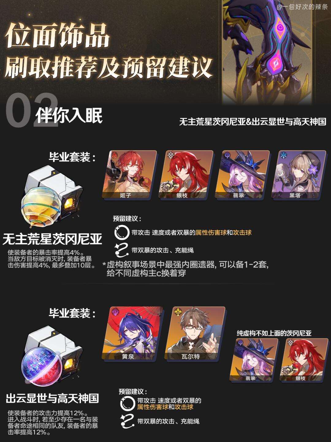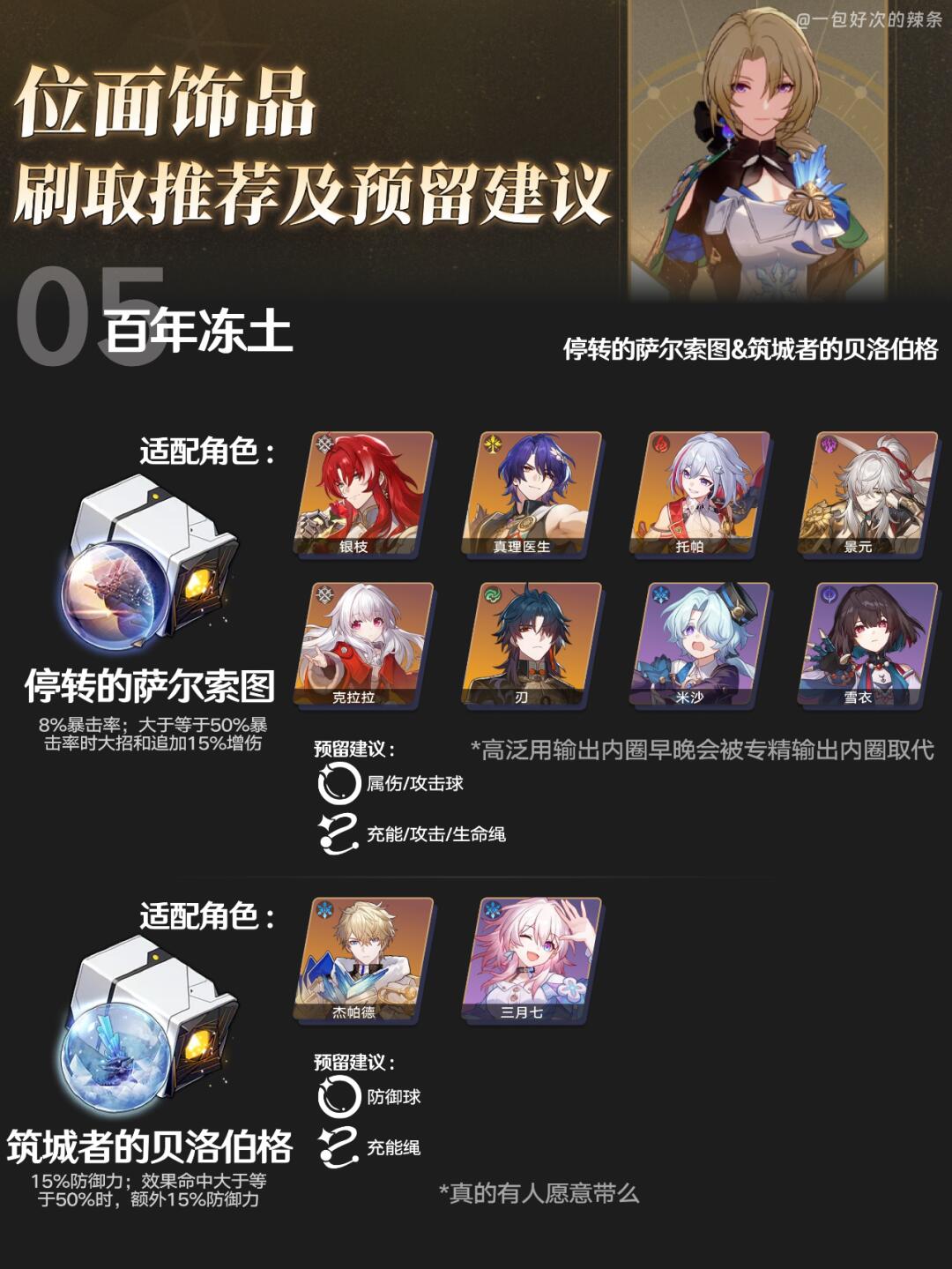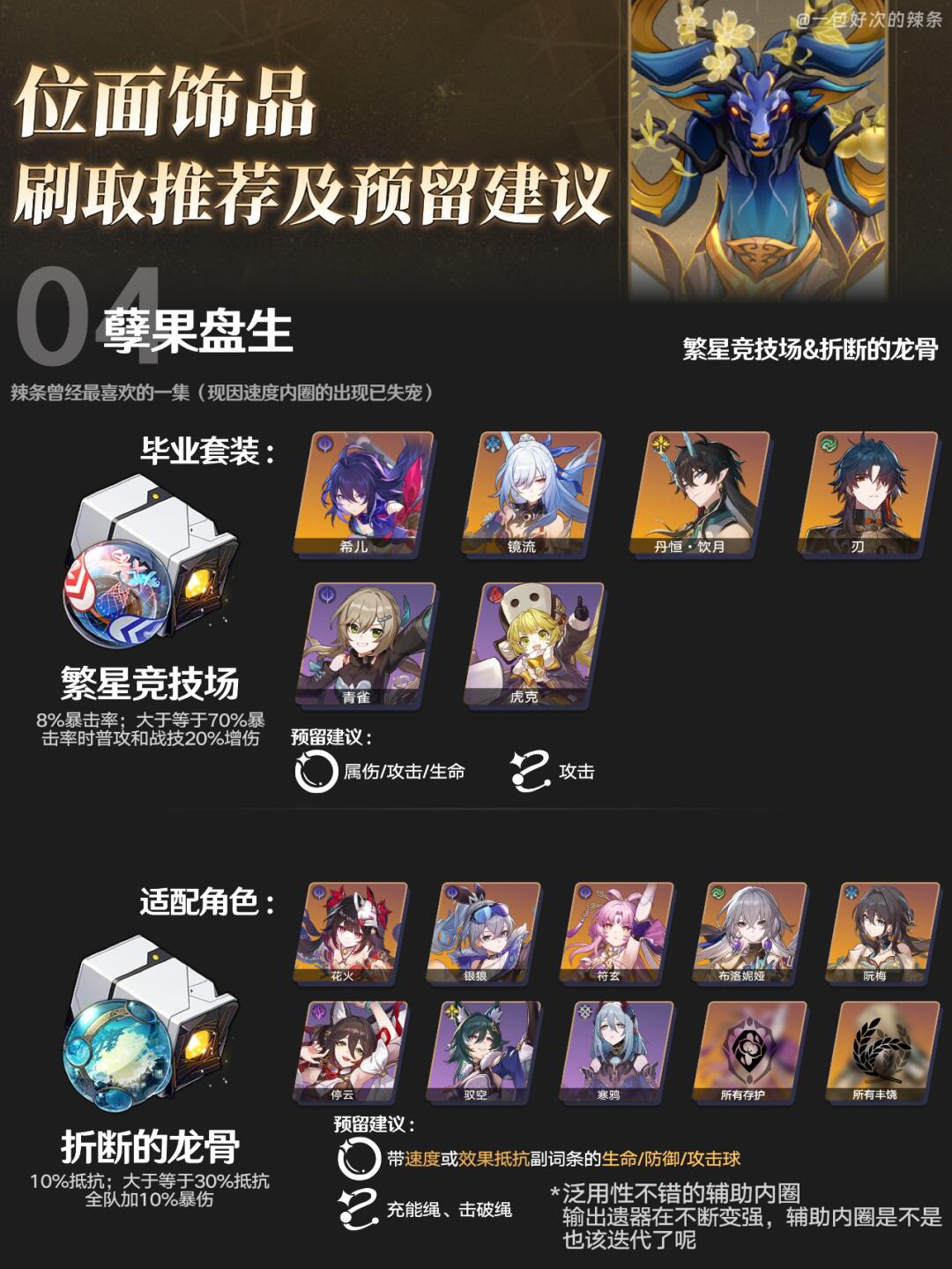 大家好,这里是一包好次的辣条! 惯例在双倍掉落前带来全内圈遗器刷取和预留推荐~ 再也不纠结刷什么啦~ ————————————— 如有遗漏/错误欢迎指出,共同进步~ 最近新玩家/回坑玩家多,大家友善讨论哦~ —————————————
