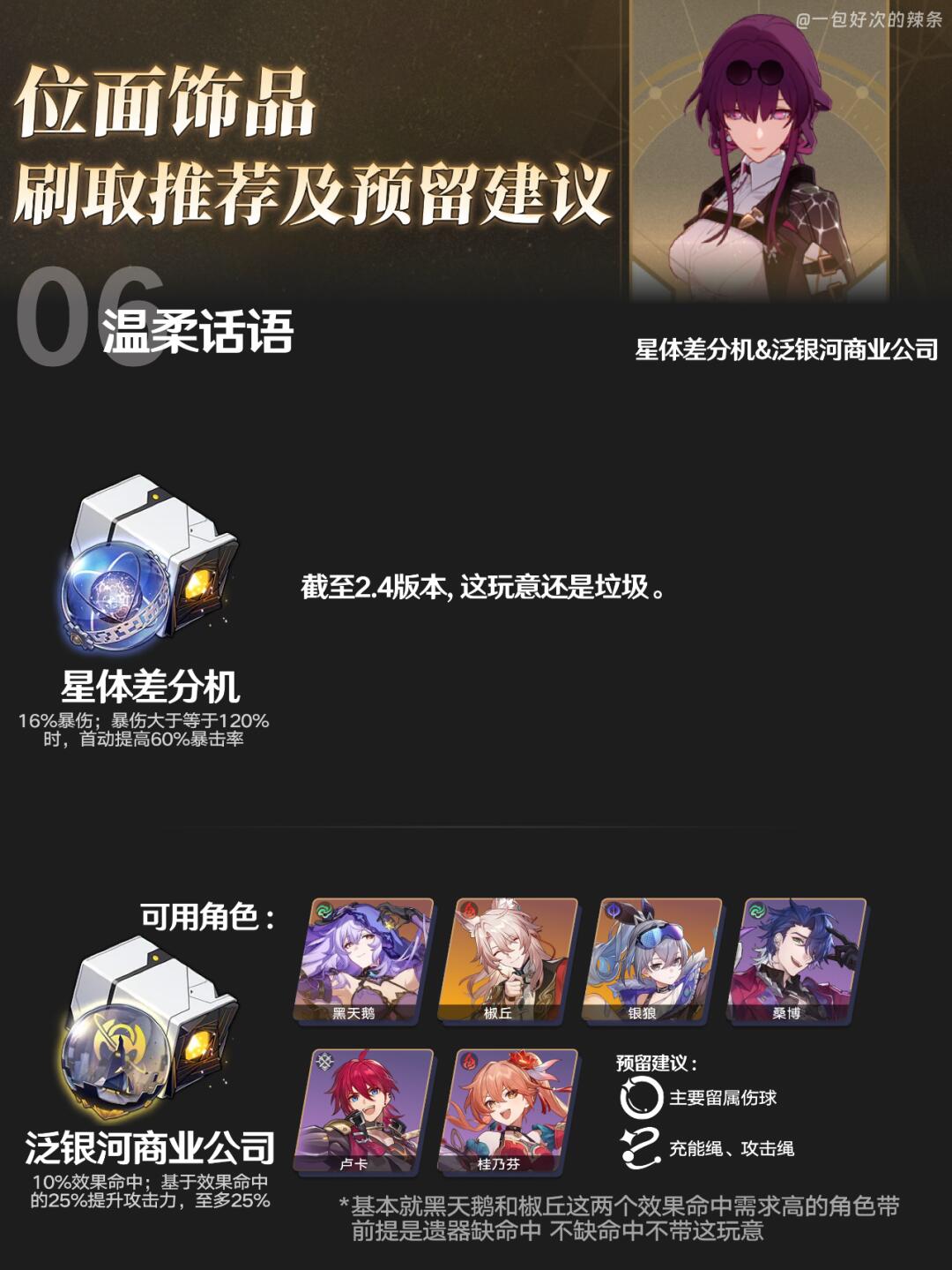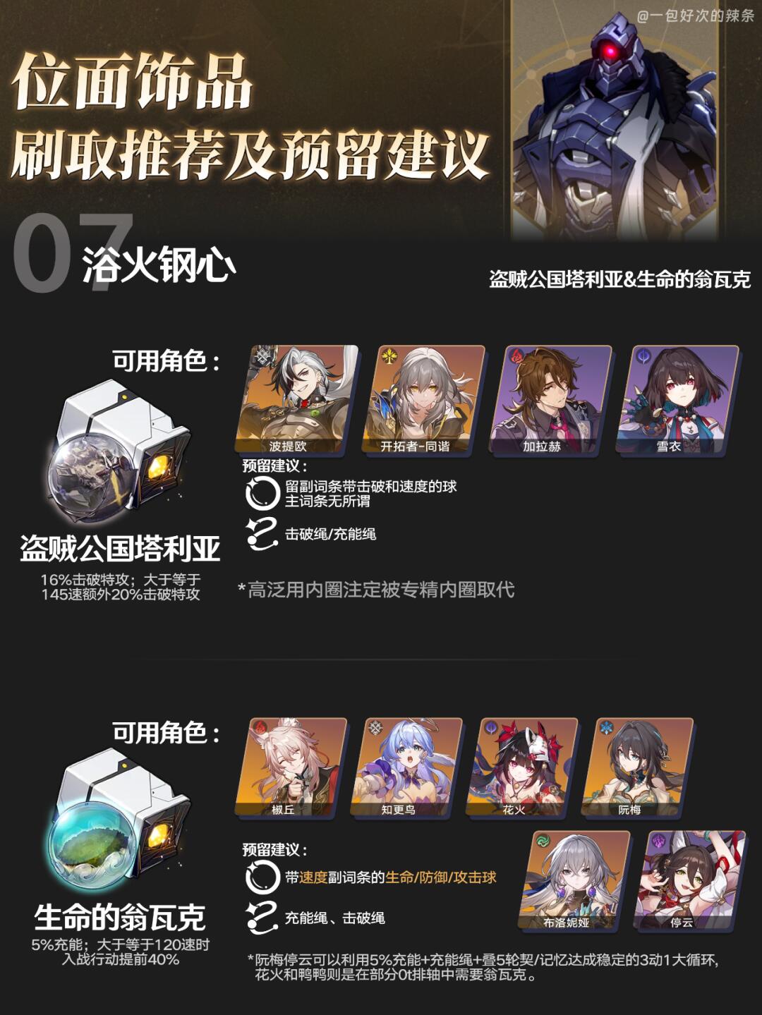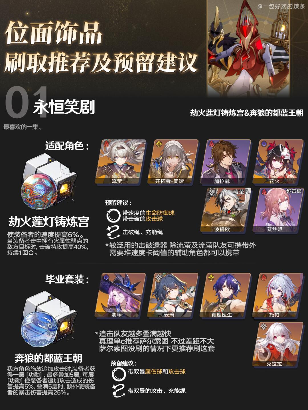 大家好,这里是一包好次的辣条! 惯例在双倍掉落前带来全内圈遗器刷取和预留推荐~ 再也不纠结刷什么啦~ ————————————— 如有遗漏/错误欢迎指出,共同进步~ 最近新玩家/回坑玩家多,大家友善讨论哦~ —————————————