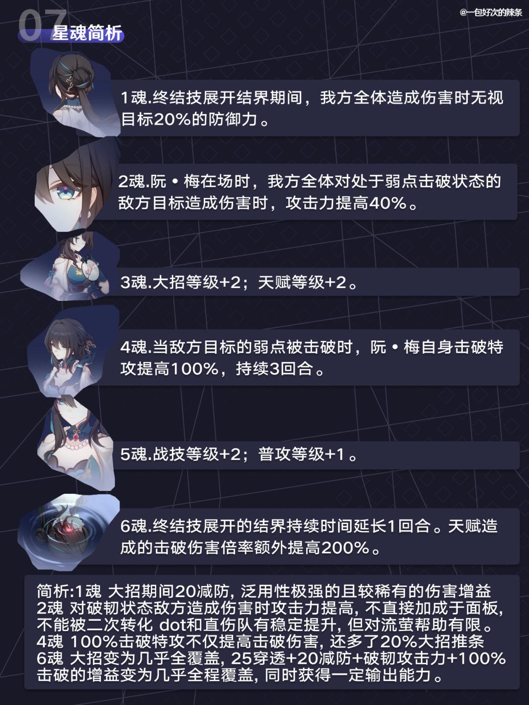 大家好,这里是一包好次的辣条! 阮梅即将迎来首次复刻 结合以往的使用体验和数据带来一份超详细的『阮梅』培养攻略! ————————————— 如有遗漏/错误欢迎指出,共同进步~ 最近新玩家/回坑玩家多,大家友善讨论哦~ —————————————