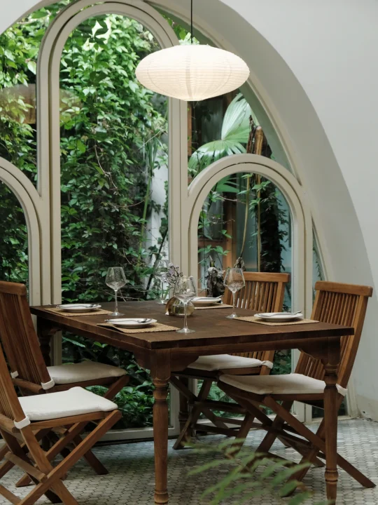 原木色调的家具与郁郁葱葱的室内绿植相互映衬