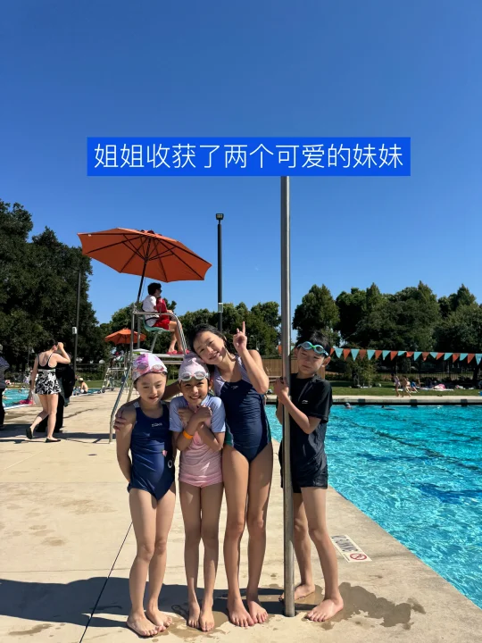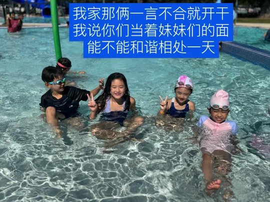 跟汉堡妹妹见过几次了,今天终于面基了汤圆妹妹,回家跟我公婆说她们的名字,婆婆说人家的小名都跟吃的有关,是不是就能好好吃饭,我说那咱家这俩饭渣要按食物起名字,那就得姐姐叫烤鸭,弟弟叫炸酱面[捂脸R][捂脸R][捂脸R][捂脸R] 弟弟出门前就吐槽说为什么总给姐姐约女生的playdate,为什么不能约全是小男孩的的局,我说我是给自己约的交朋友局啊跟你们有什么关系[鄙视R][鄙视R][鄙视R][鄙视R]而且能见到湾区最可爱漂亮的小女孩是你的荣幸,please别跟我叽叽歪歪一整天。。。好在后来又偶遇了Alex弟弟,有个男生能跟他一起玩,要不然又要一直墨迹为什么不能约小男生[笑哭R][笑哭R][笑哭R] Moutain view 新开的这个游泳池还是不错的,有深水池和浅水池,有滑梯什么,娃们玩了一下午都不愿意走。有两个小跳台可以玩跳水,但是要简单的考个试,比如游25yard和踩水30秒,姐姐是肯定没问题的,弟弟靠着狗刨和瞎扑腾也考过了,给考过的小孩发了手环,就可以去深水池和玩跳水了 Rengstorff Park Aquatics Center 2073 Crisanto Ave Mountain View, CA 94040 小孩一个人7块钱随便玩 娃和老母亲都交到了新朋友,娃玩的开心,老母亲们聊的开心,感谢哈哈哈哈