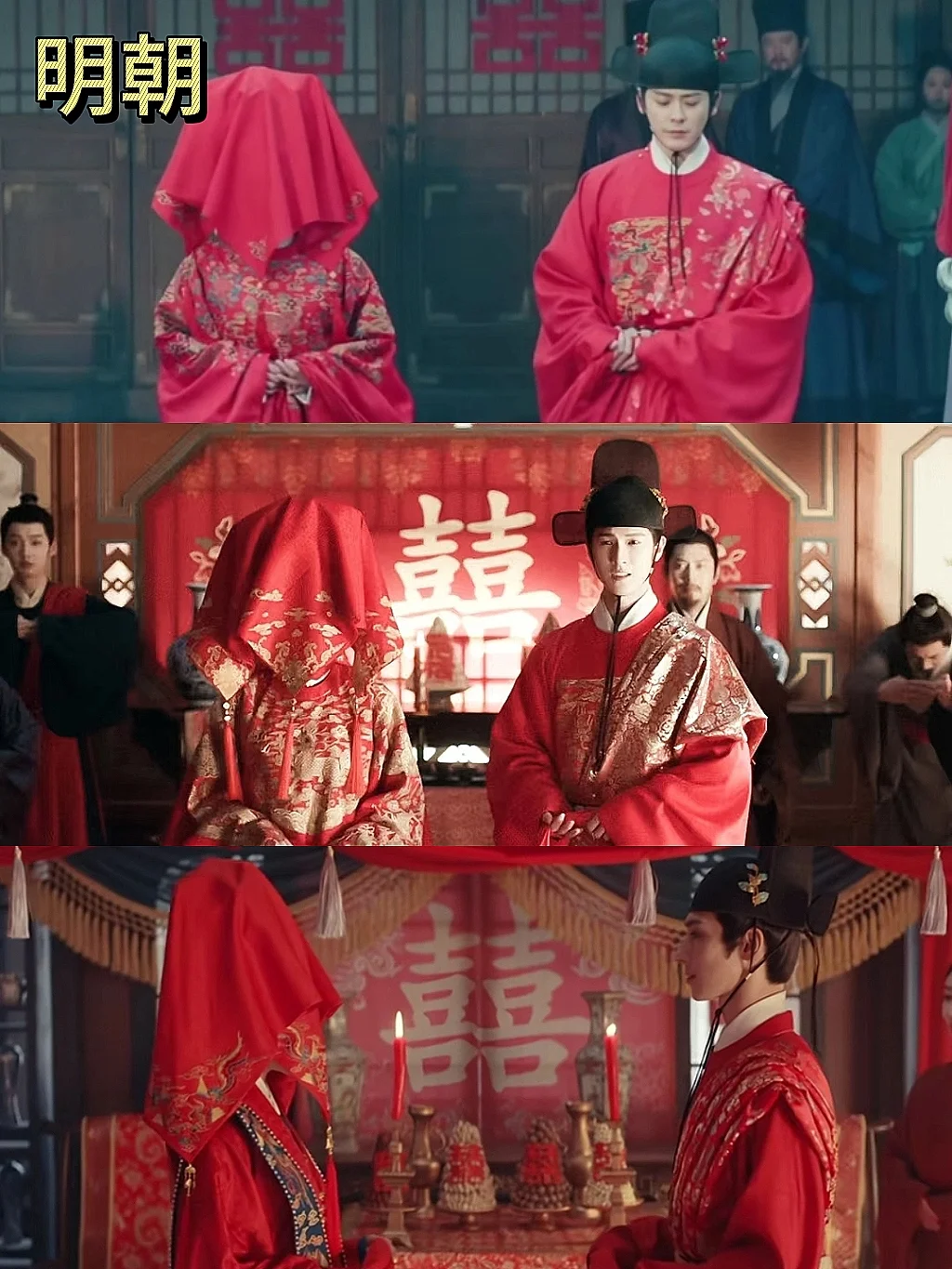 3️⃣【明朝】婚礼的盖头:明朝建立后,盖头传统得以延续,并成为明代婚礼中新娘头饰的主流。