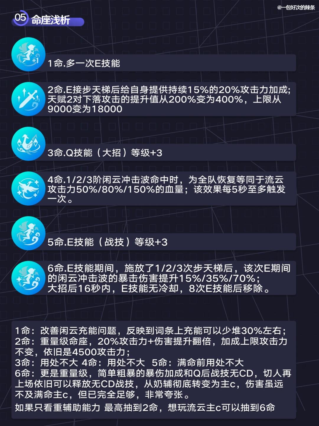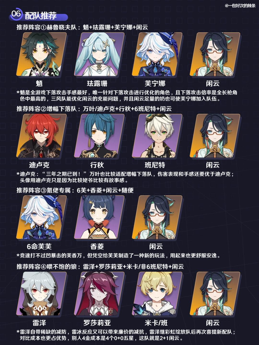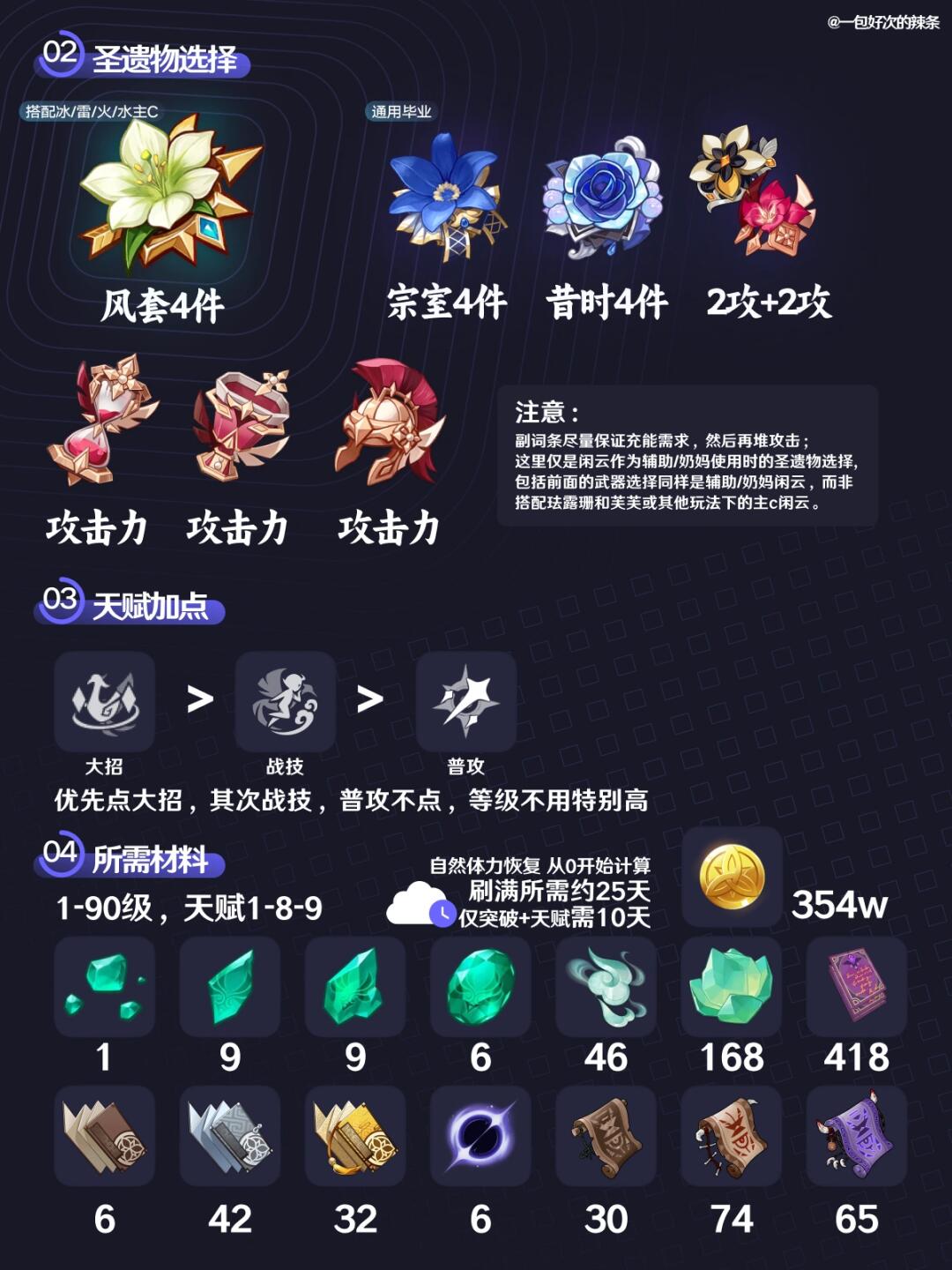 注意,本篇是常规用法,即奶辅闲云的培养指南,若需要主c闲云,可移步主页同时发布的另外一条图文中哦~