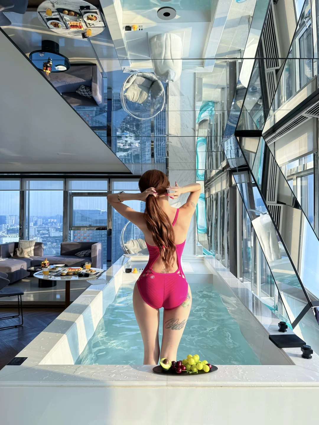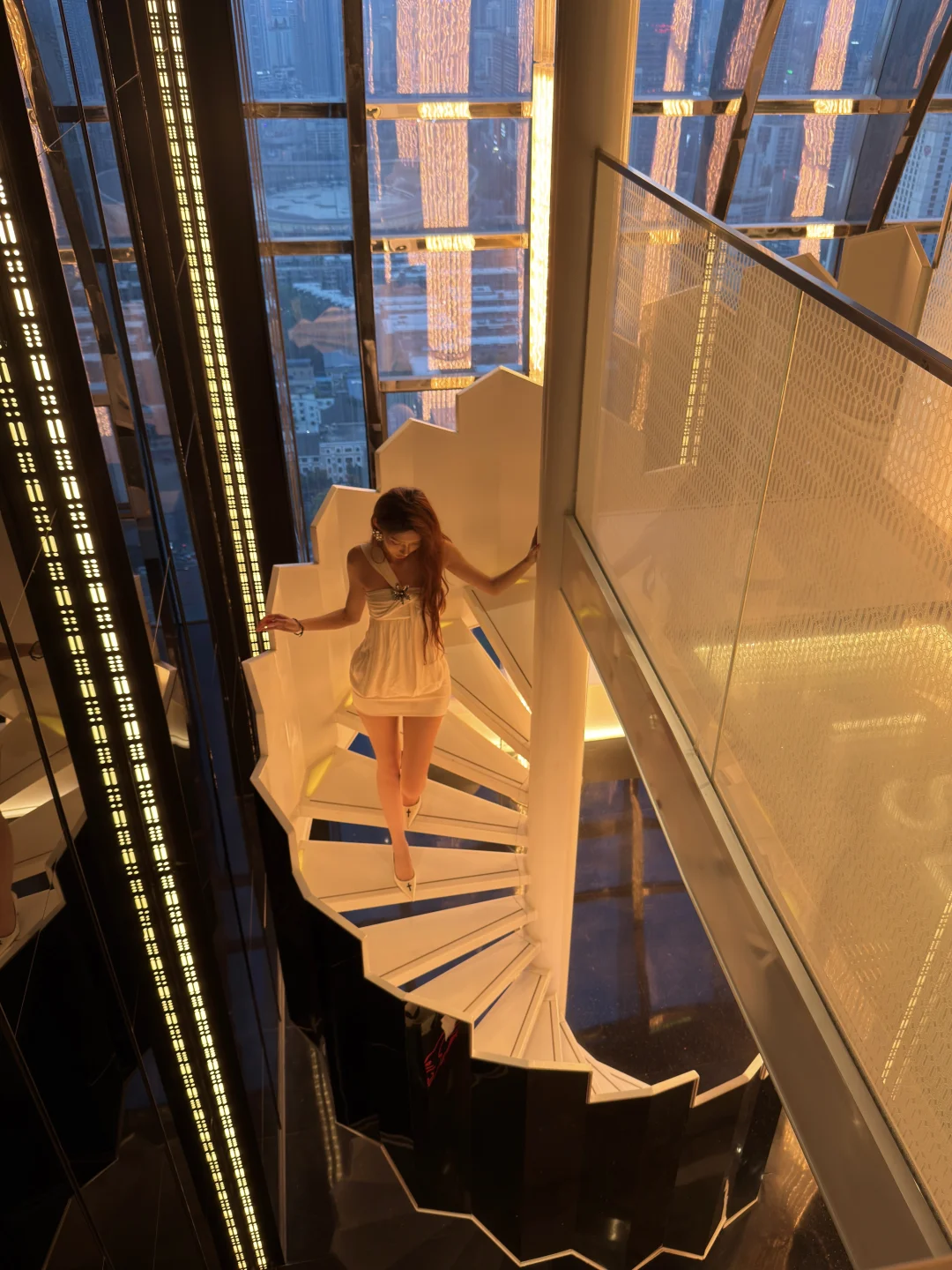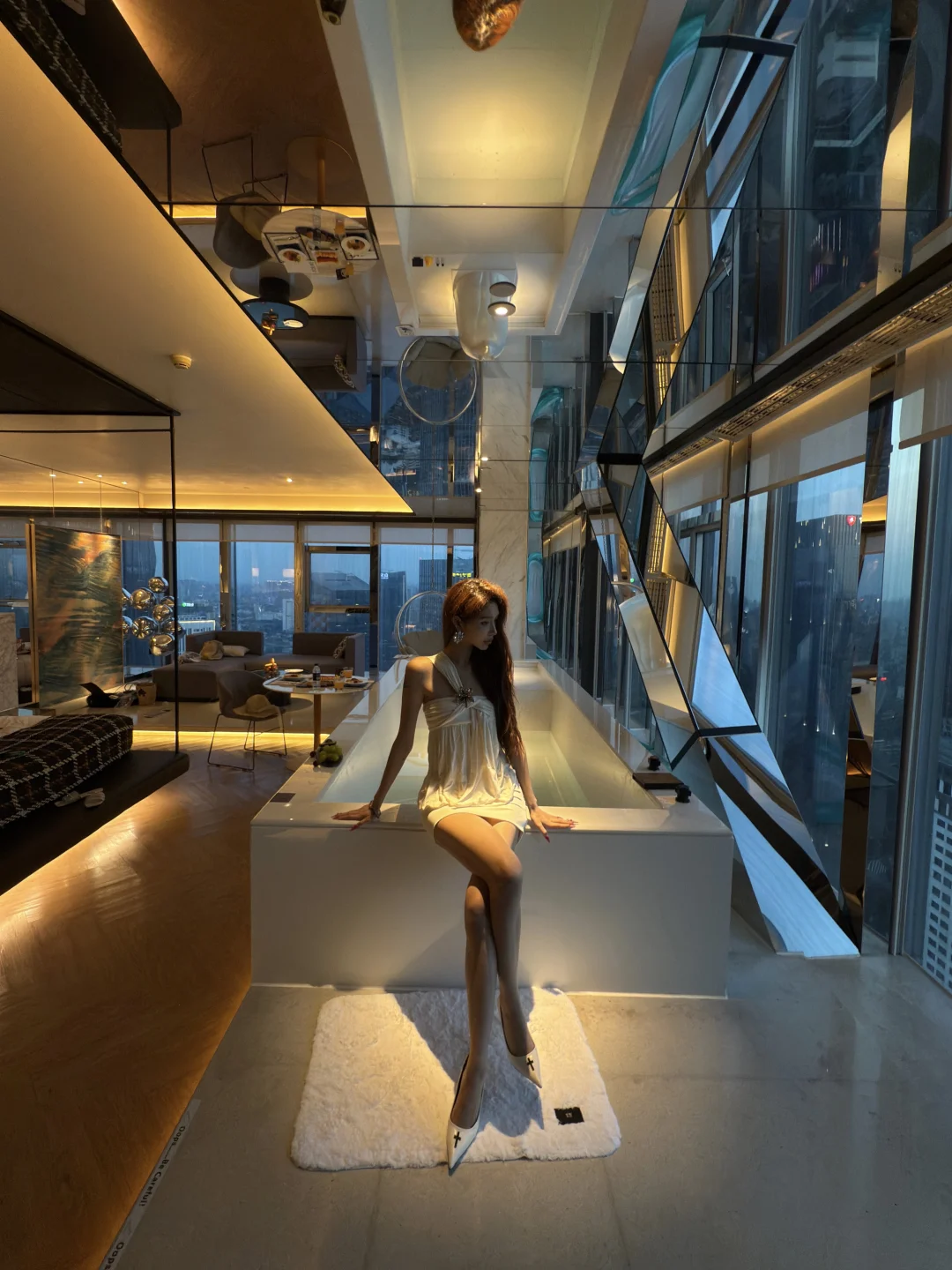 37楼泡澡时霓虹城景在脚下流动🌃 金可儿床垫真的像睡在棉花上! 管家凌晨2点还帮我热了夜宵…谁懂啊!! 睡到11点居然还有热乎早餐🍳 旋转楼梯随手拍被朋友问爆了📸 📍位置绝了! 下楼就是地铁 逛吃暴走一天回酒店秒瘫~