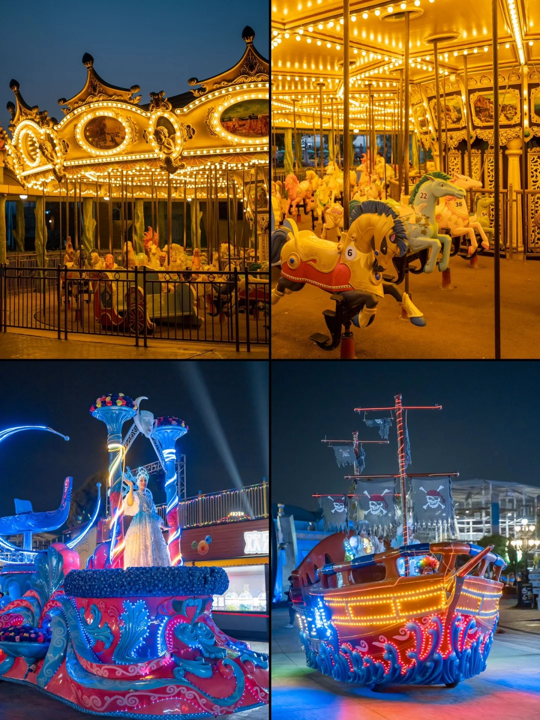 仿佛童话世界一样、各种适合大小朋友的游玩项目、夜幕下做一次旋转木马真的浪漫至极