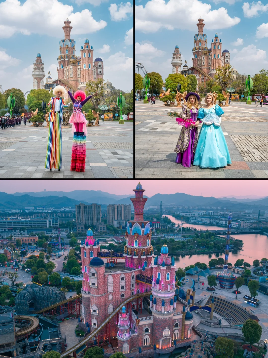 粉色的城堡拍照很好看、有公主梦的小姐姐不要错过;城堡的另一面就是飞舟冲浪、俯冲而下水花四溅、非常刺激