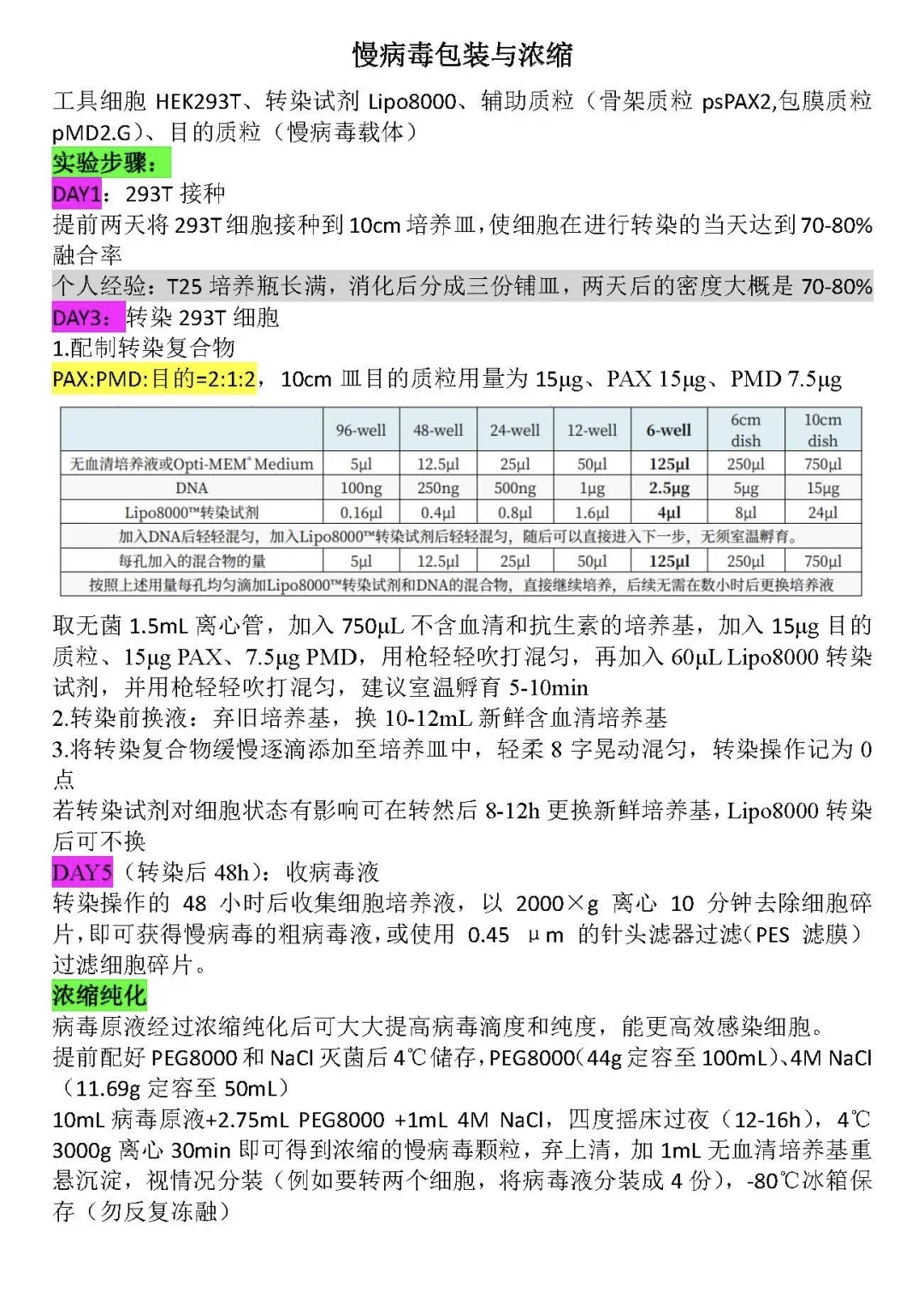 慢病毒包装与浓缩:详细步骤在图3,这里说一下为啥要浓缩,其实粗病毒液也是可以转细胞的,只是转进去的阳性率可能不高,要筛很久,浓缩之后可以提高感染阳性率,我现在感染病毒之后几乎不需要用药再筛选了,节省很多时间
