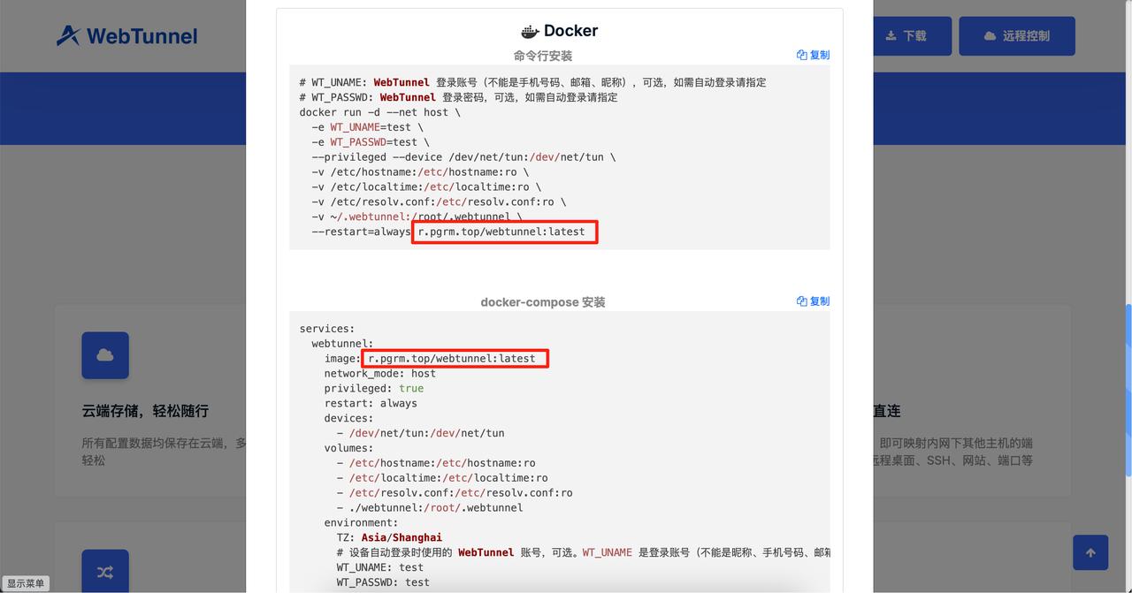 Docker 内网穿透客户端使用体验改进了,使用轻松多了: 1、统一镜像,支持多架构,无再区分 x64、arm64 2、改进了 docker run 及 compose 脚本的安装方式,容器同步宿主机的时间、dns、主机名 3、修复了容器停止卡死,然后提示异常退出的问题 4、WebTunnel 客户端使用宿主机的主机名作为终端名称,避免升级后提示主机变更和离线的问题 5、修复了路径不存在时报错的问题 6、减小了镜像尺寸,拉取更轻松 官网已更新: