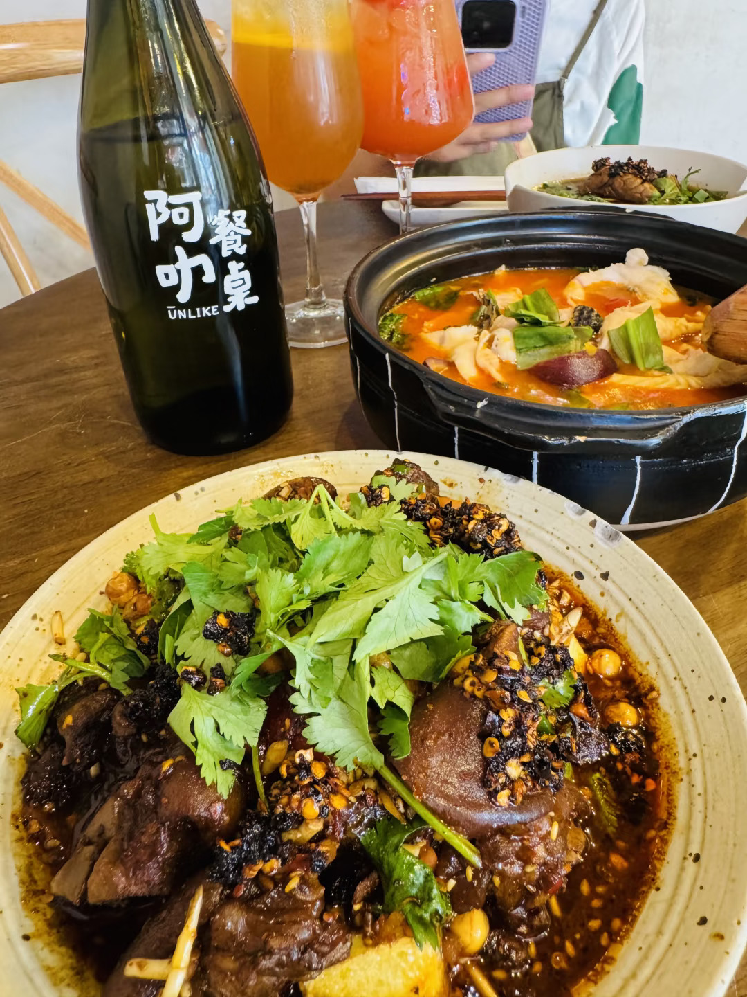 ✅木姜子烤鸡✅臭豆腐牛肉锅✅芝士奶豆腐拌皮蛋✅酸汤肥牛薄饼✅麻婆三色米豆腐