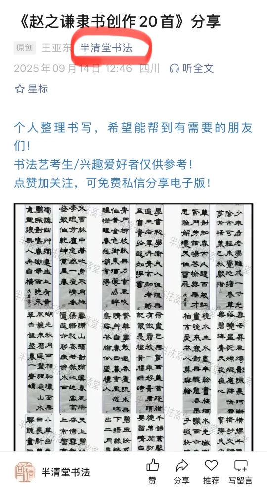 想要原文件的朋友们!! 关注v❤️公众号,半清堂书法! 可免费领取全部20首创作!