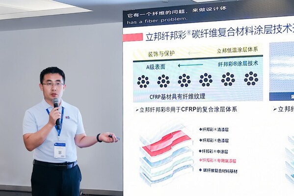 展会期间,立邦资深技术经理刘立超在展台发表了《立邦复合材料涂装解决方案及应用》主题演讲,从行业普遍面临的复材涂装痛点切入,剖析立邦针对碳纤维复材涂装、玻纤复材涂装的创新产品特性与应用案例,并与在场的产业链伙伴展开深入交流,共探复材技术创新路径。