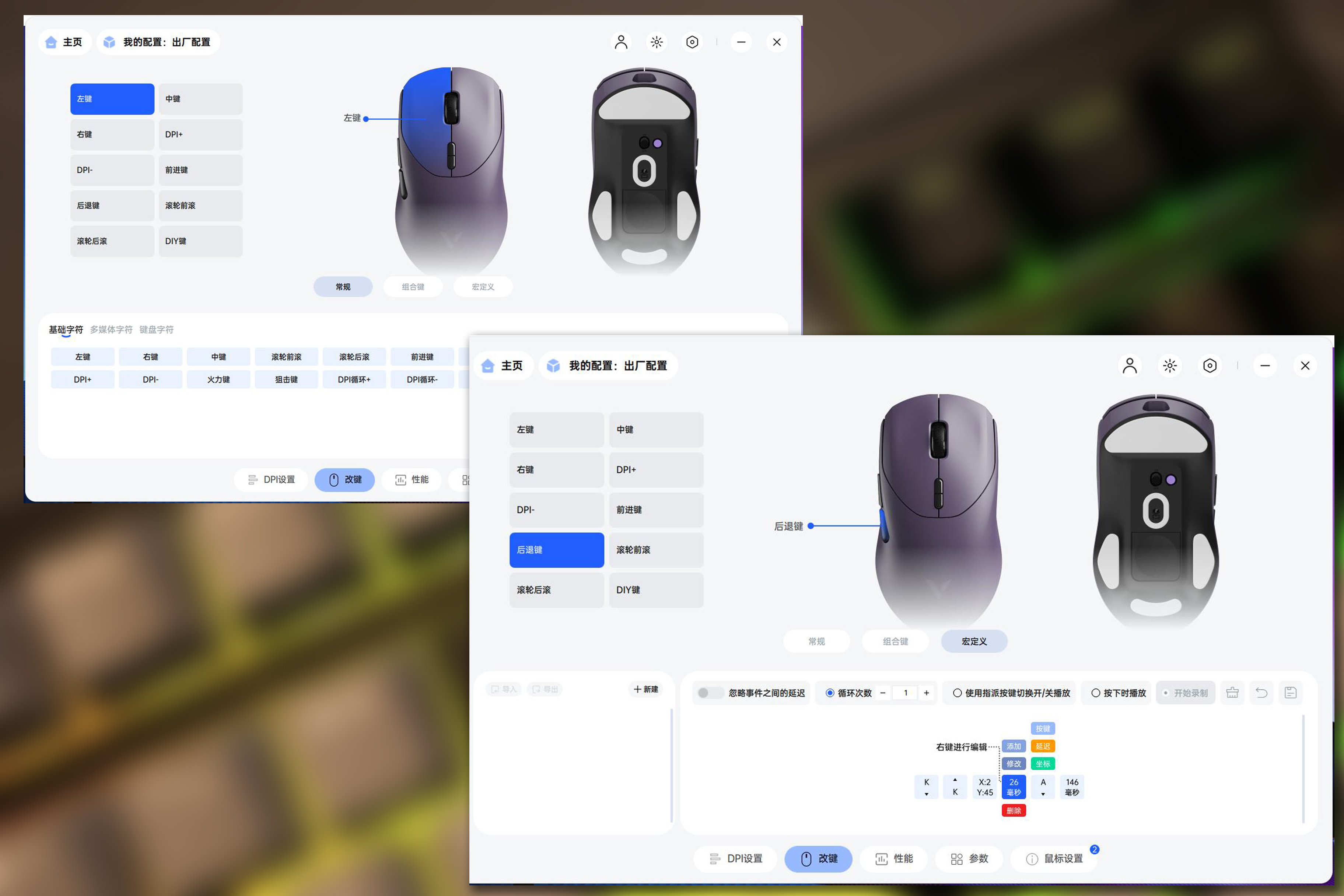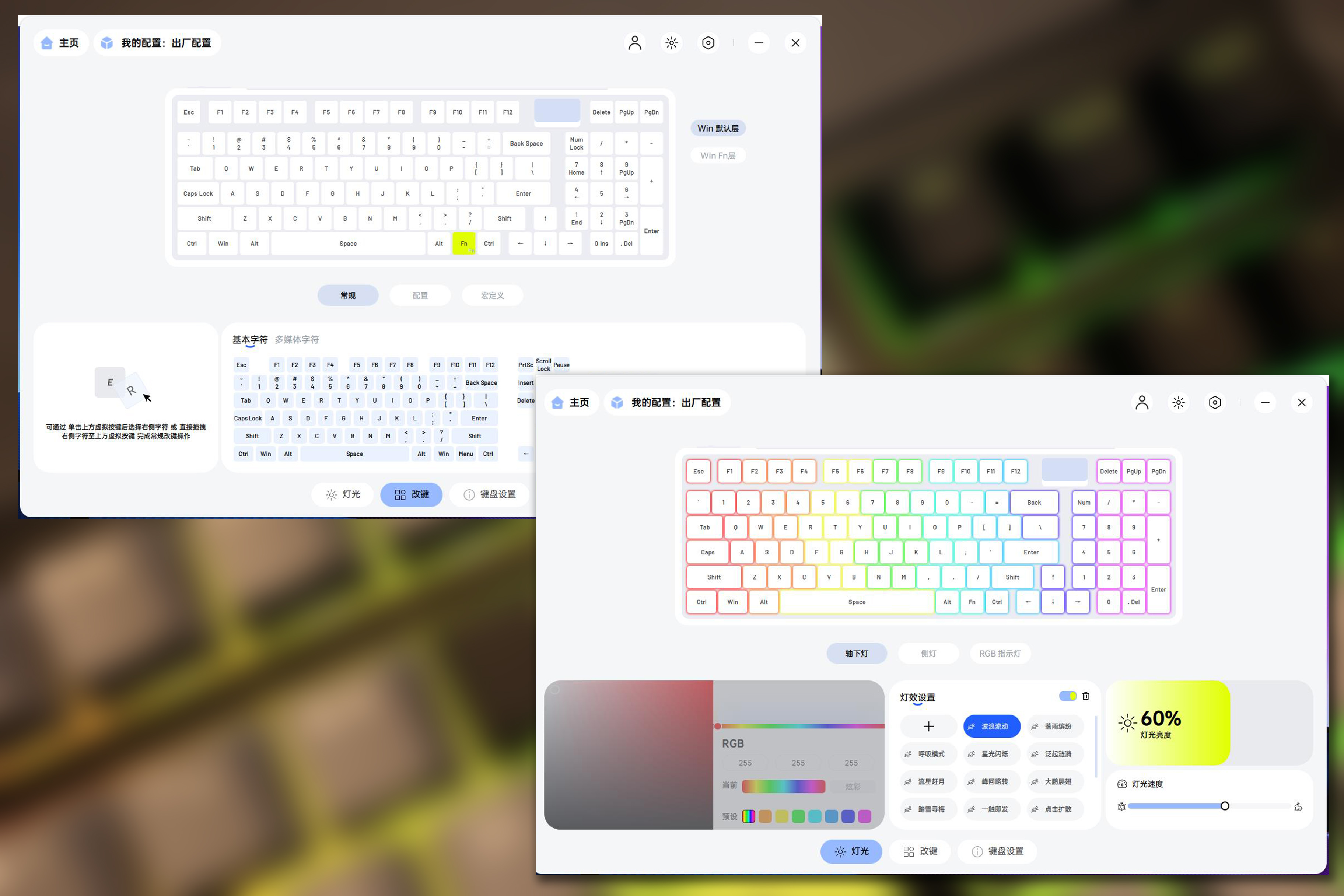 在打开键盘设置界面后,可以直接对键盘进行可视化的设置,比如改键、回报率以及宏定义,有了这个,玩游戏的时候一些快捷键设置直接搞定,可玩性极高。