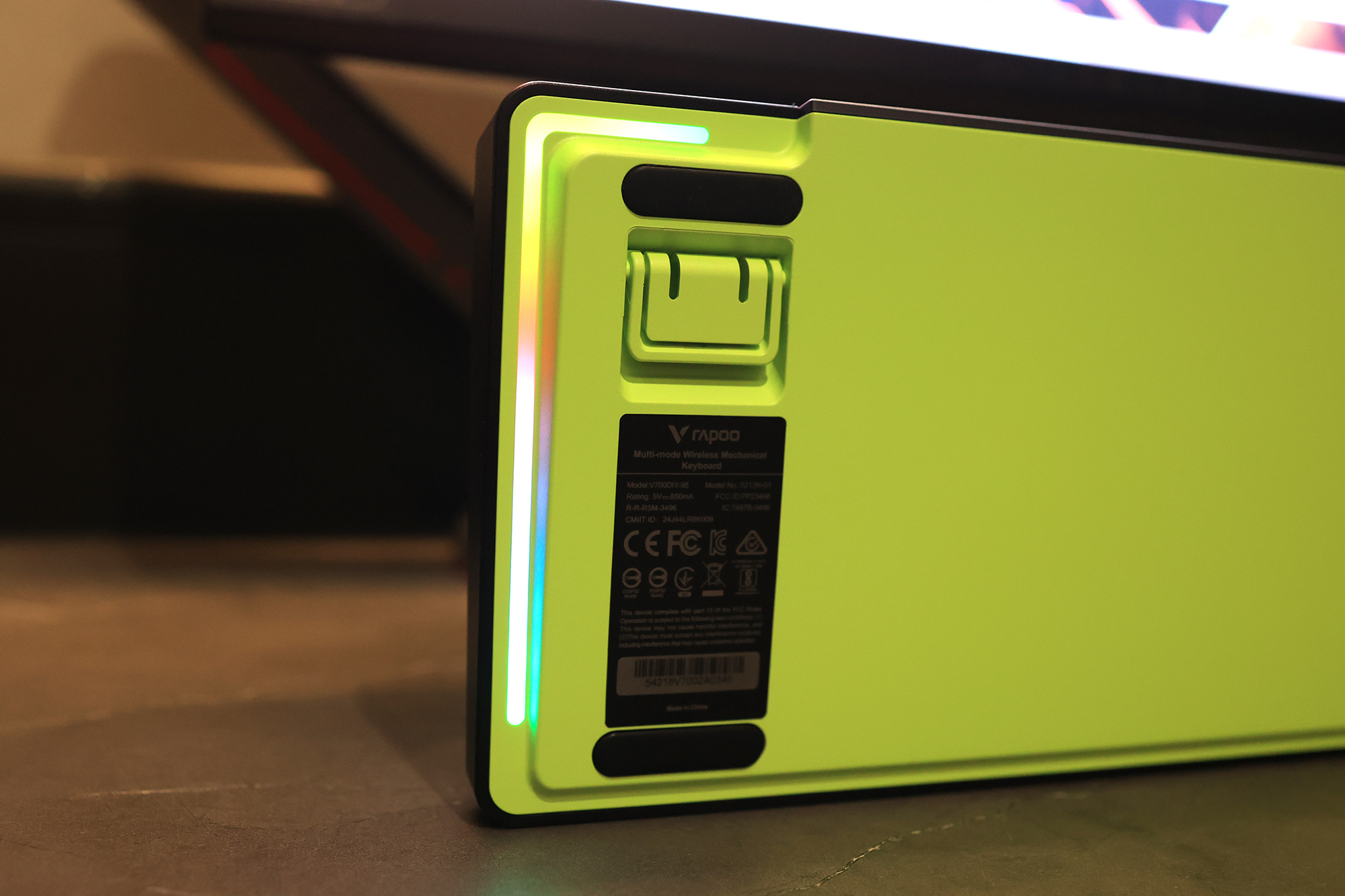 拉氛围的时候到了,在键盘的底部还有一个可变幻彩的LED灯带,支持多种背景灯光模式调节,完全可以根据自己的喜好和当前的游戏氛围调整,氛围感直接拉满。
