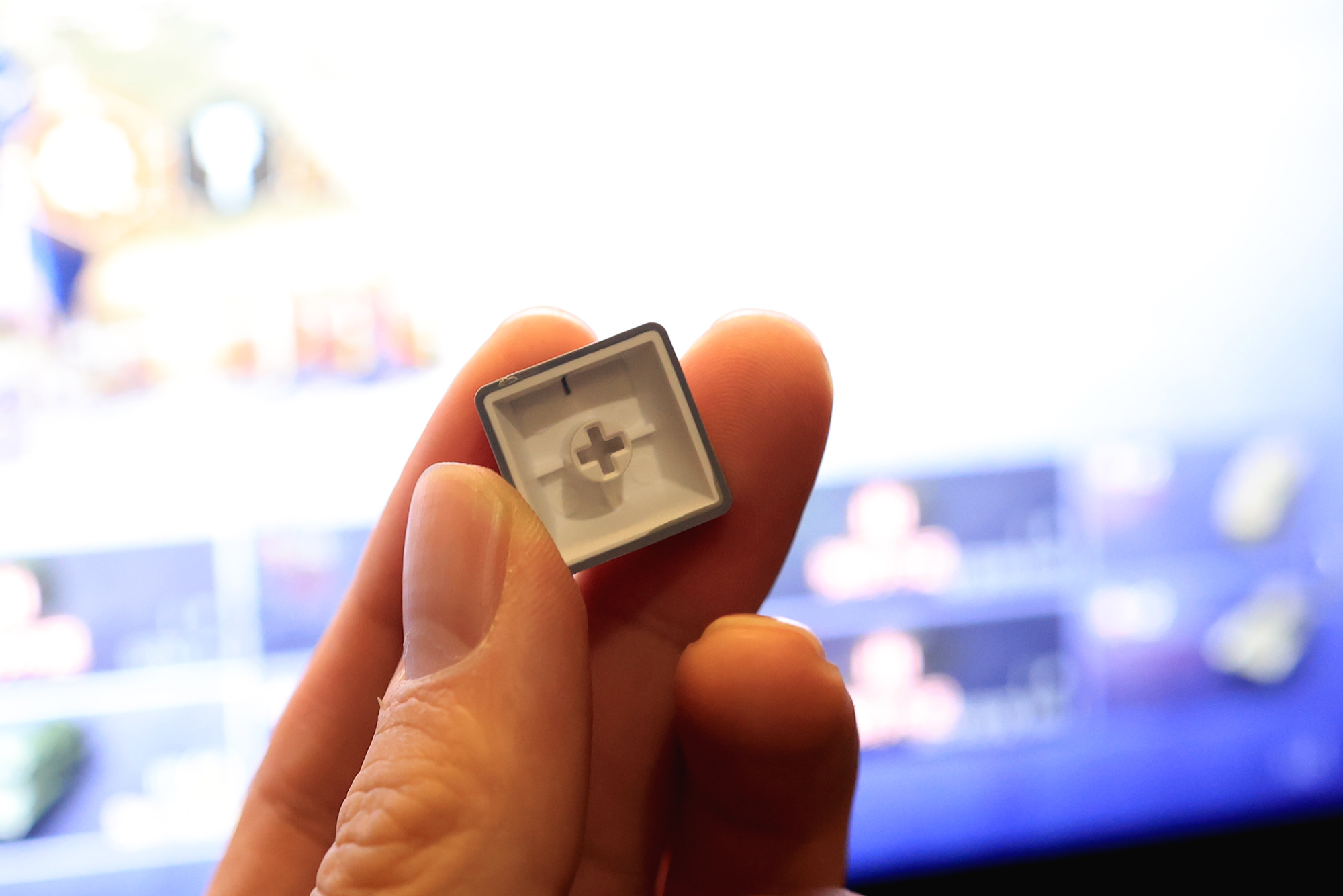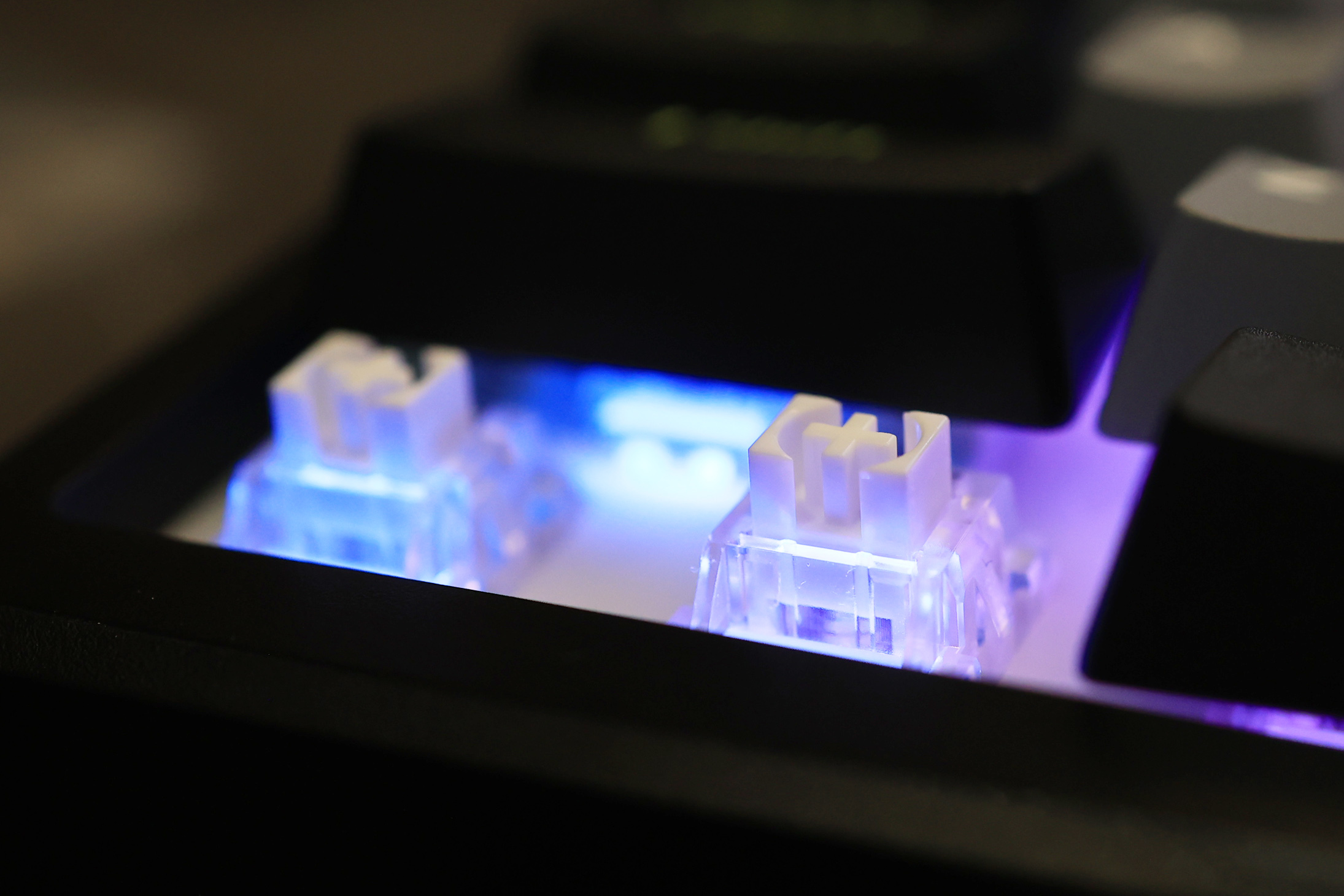 目前这款键盘一共是两种凯华定制轴体,从图上可以看到,它的轴芯用了围栏结构加固,我选择的是一款弹白轴,这个轴体兼顾了游戏与打字较多的朋友,毕竟这个轴体回弹适中,触发力度也会更适中一些,但是总体触发还是比较疾速。