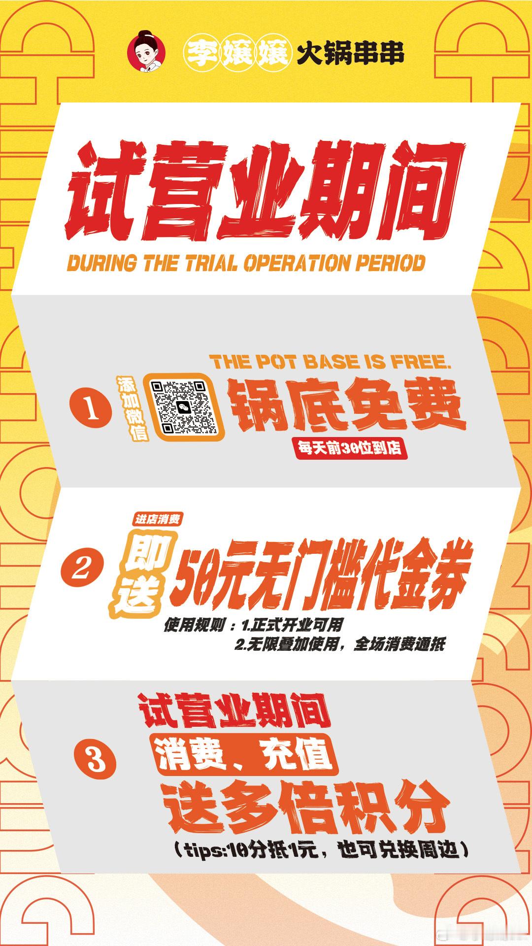 1️⃣每天前30位到店免锅底费