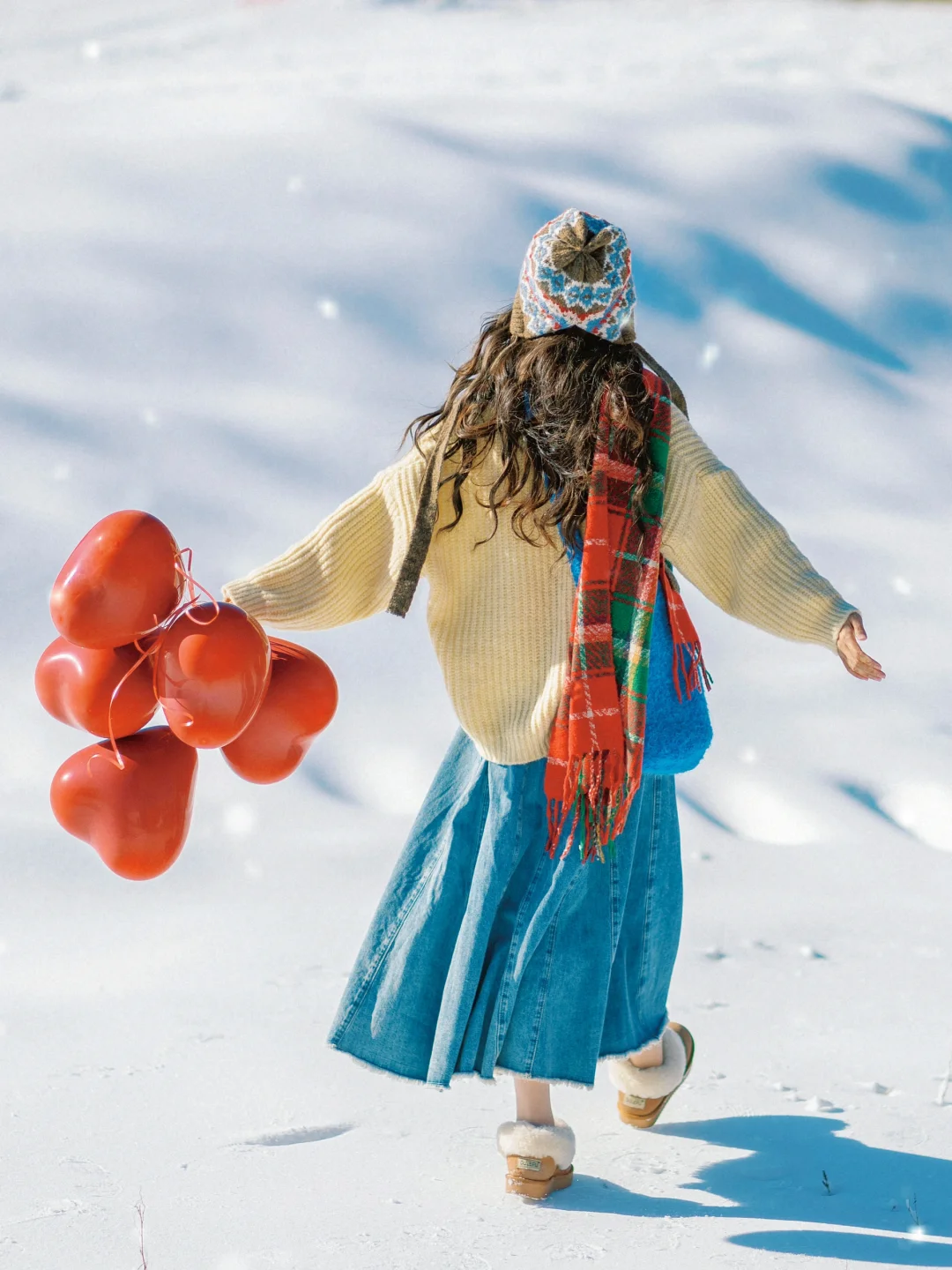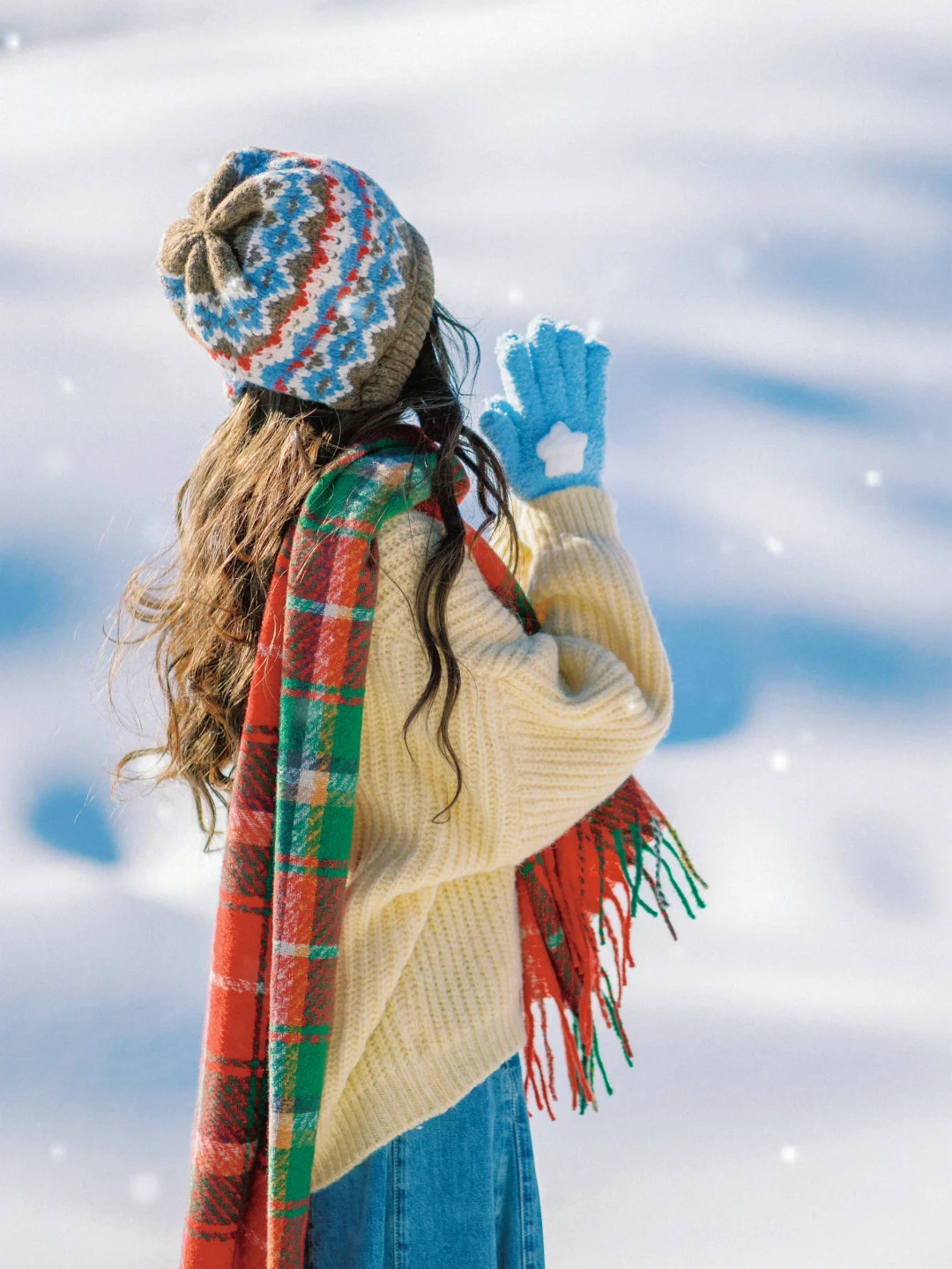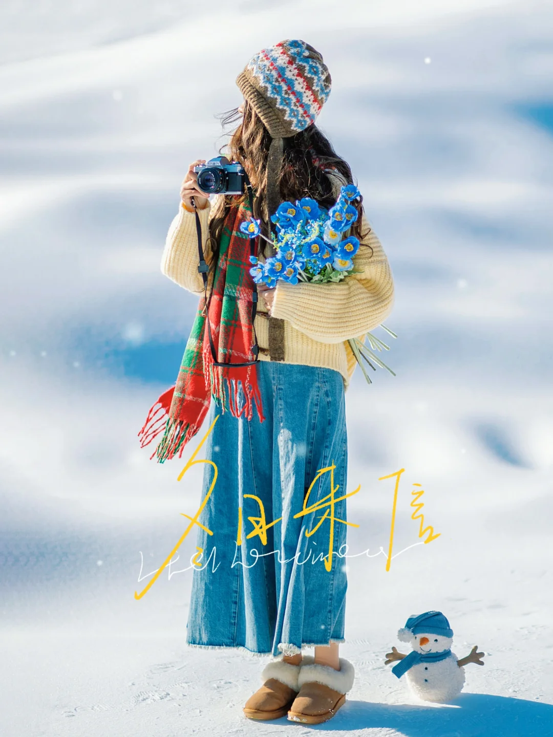 嗨,冬日一定不要错过的雪地拍照,除了拍照姿势,快来收下这份雪地出片穿搭指南吧,好看的穿搭一定是出片最关键的地方, 这次搭配了一顶可爱的费尔岛针织帽,再加上一条红配绿的格子围巾,鲜艳的色彩碰撞,简直就是上镜神器,让雪景照片瞬间丰富起来啦~
