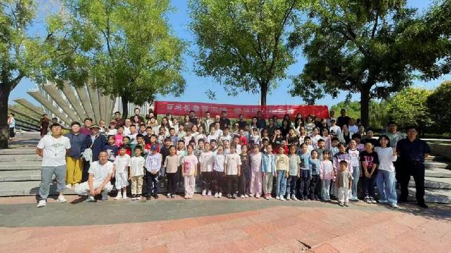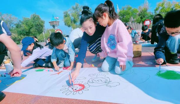 滨州日报/滨州网讯9月20日上午,滨州市政广场上热闹非凡,莲华学园二年级四班小荷中队与四年级三班苔花中队的师生及家长们齐聚于此,共同开展“百米画卷寄深情,童笔同心绘新篇”主题活动,以童真的笔触为莲华学园十周年校庆献上独特祝福。