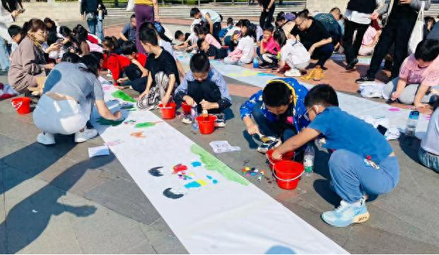 上午9时,活动启动。百米画布在广场铺开,如梦想画卷般吸引市民驻足。孩子们难掩激动,满是对创作的向往;家长微笑陪伴,现场暖意融融。