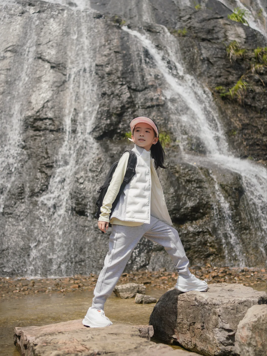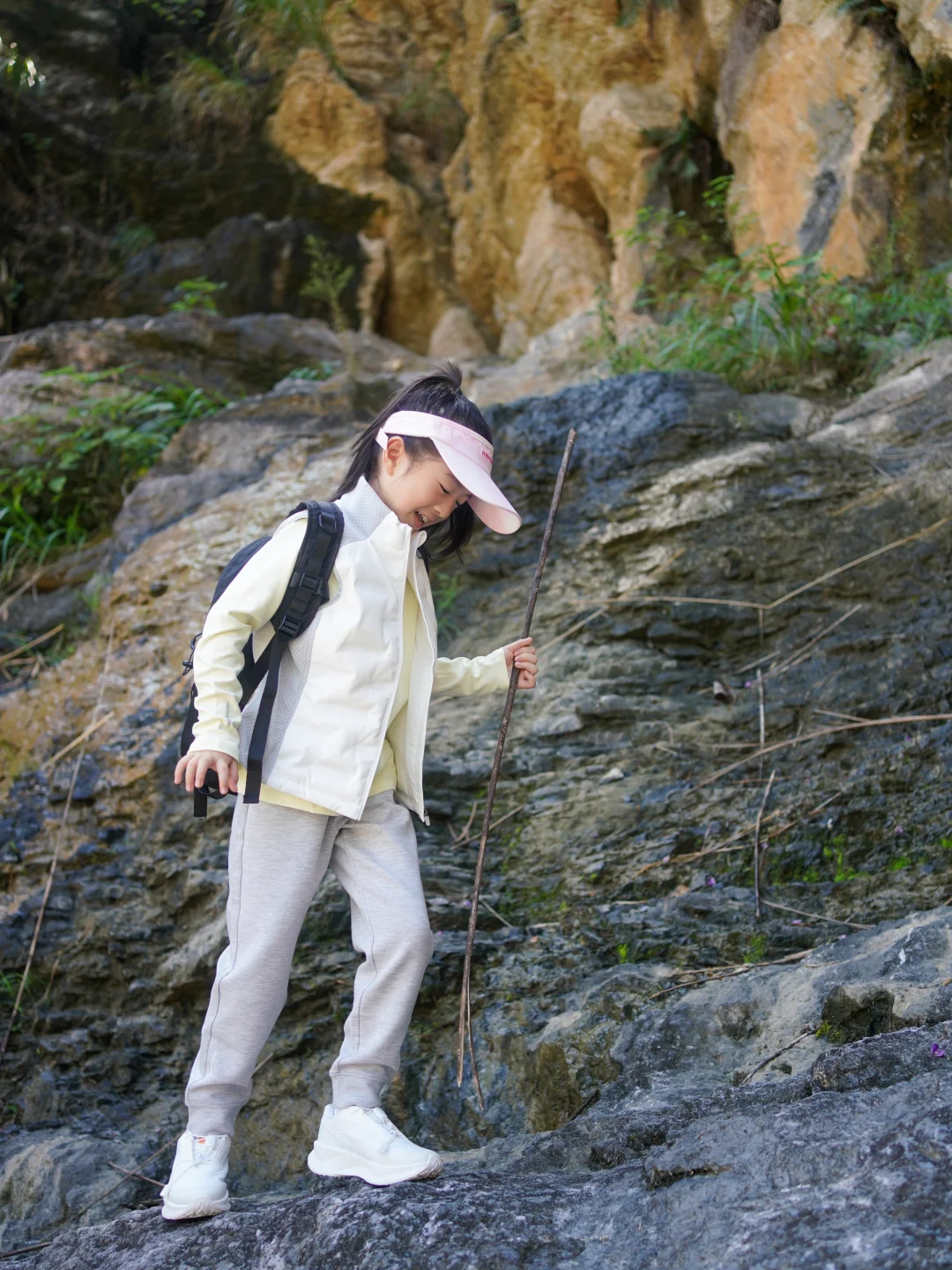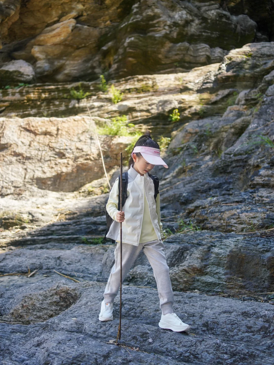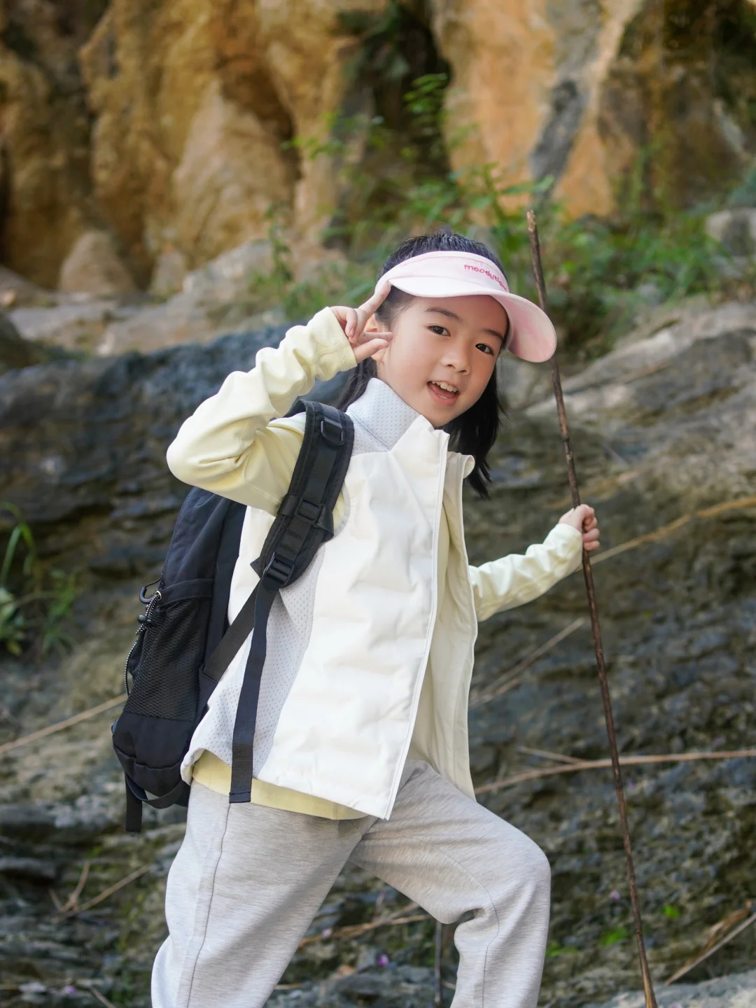 穿上身试了试,跑跳、抬手都特别自在,完全不会被束缚住,毕竟爬山时,孩子总爱蹦蹦跳跳地去追路边的小鸟、捡地上的落叶,舒服的衣服才能让她尽情撒欢。